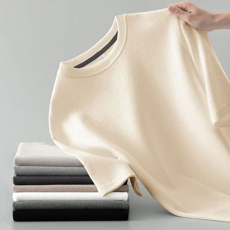 Korean Style Men Summer T-Shirt Man Short Sleeved Waffle Solid T-Shirt Color Casual Tee Round Men's Round Neck Fashion Top