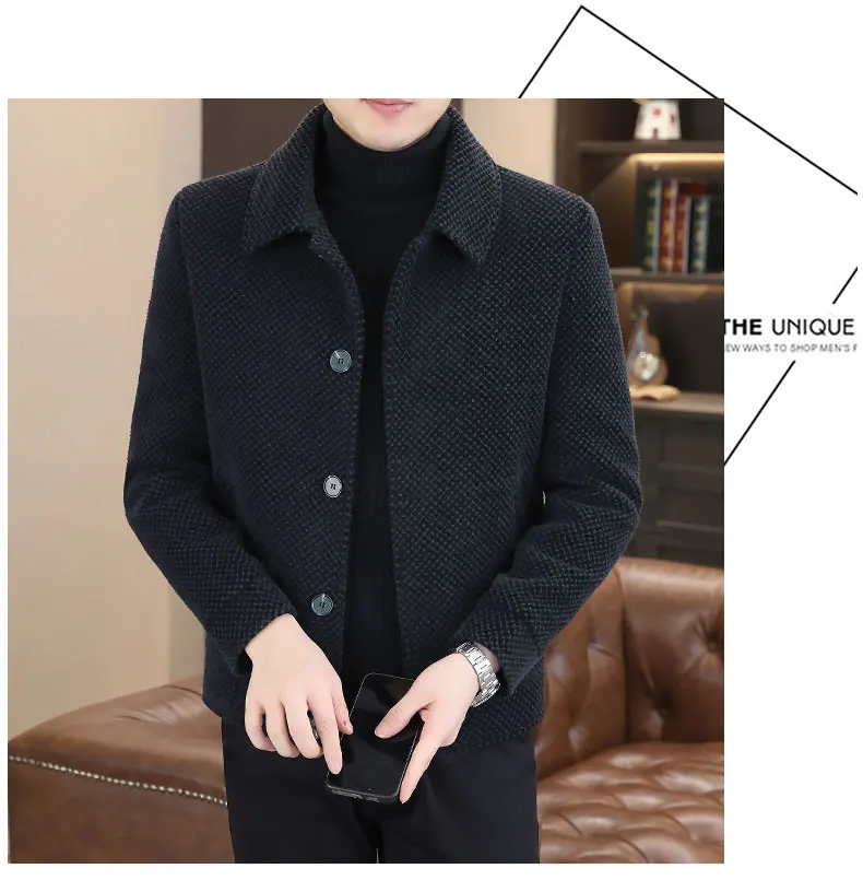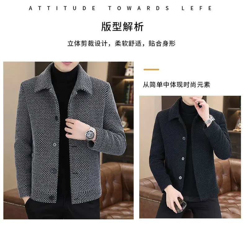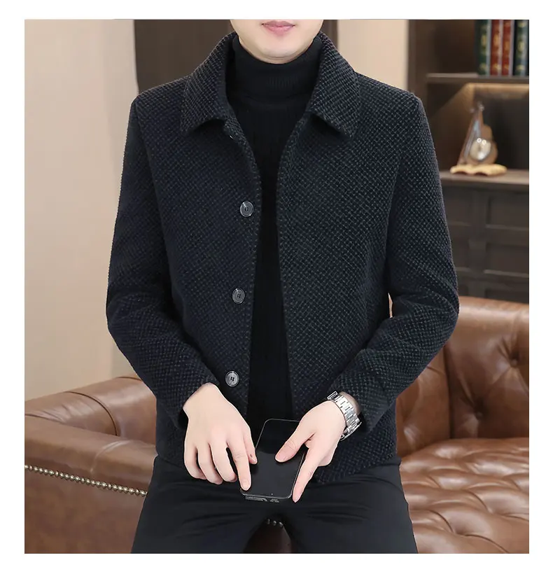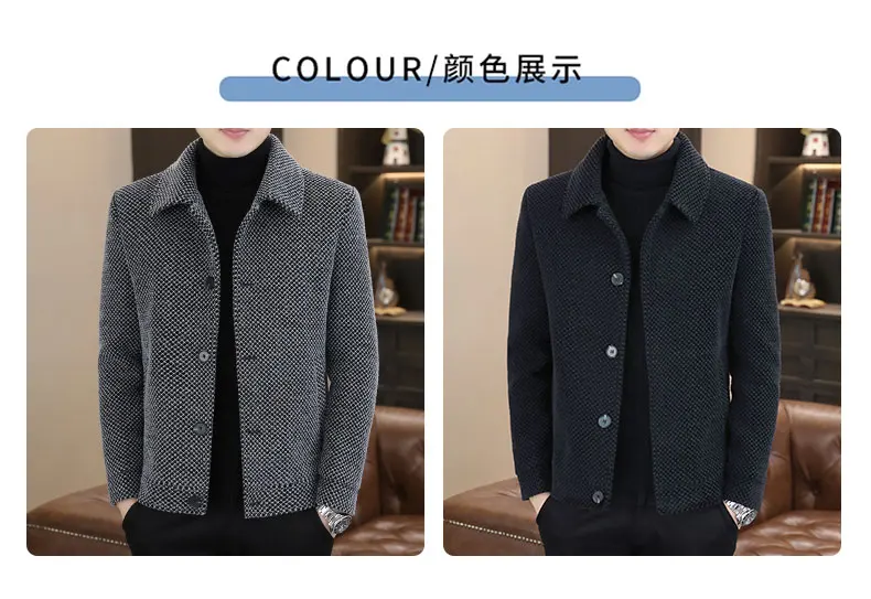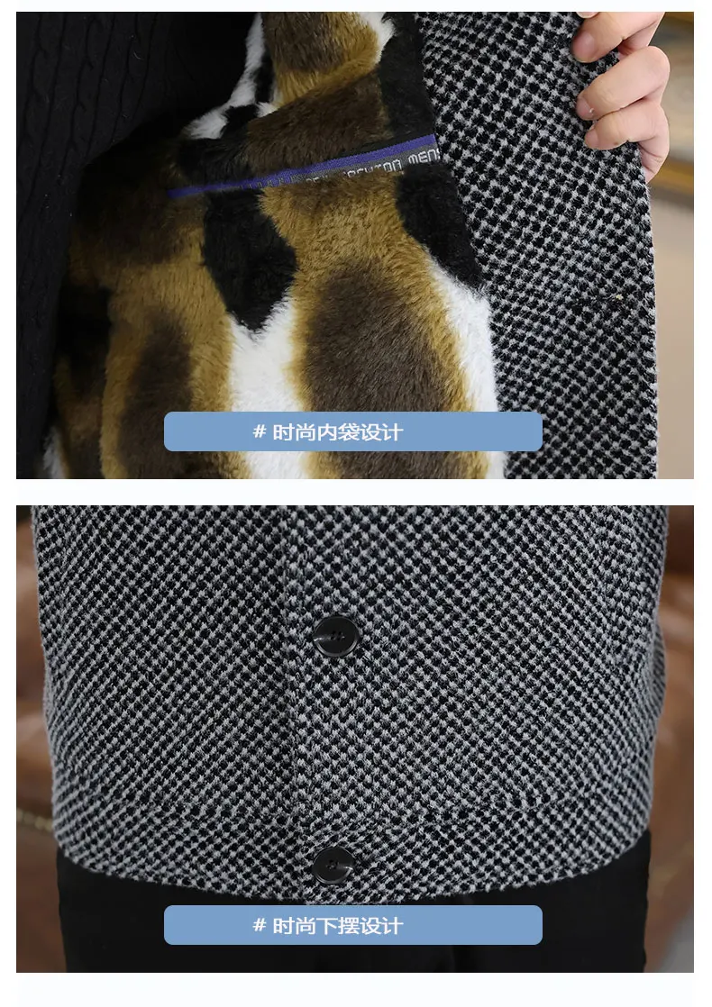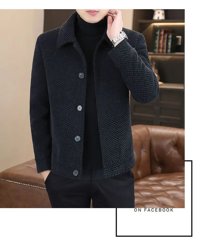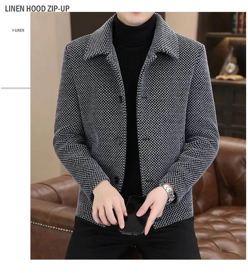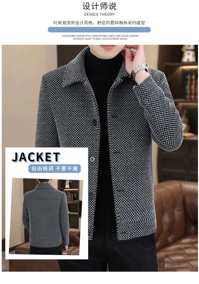 Korean Winter Woolen Jacket Men Plush and Warm Short Trench Coat Plaid Casual Business Streetwear Overcoat Social Men Clothing