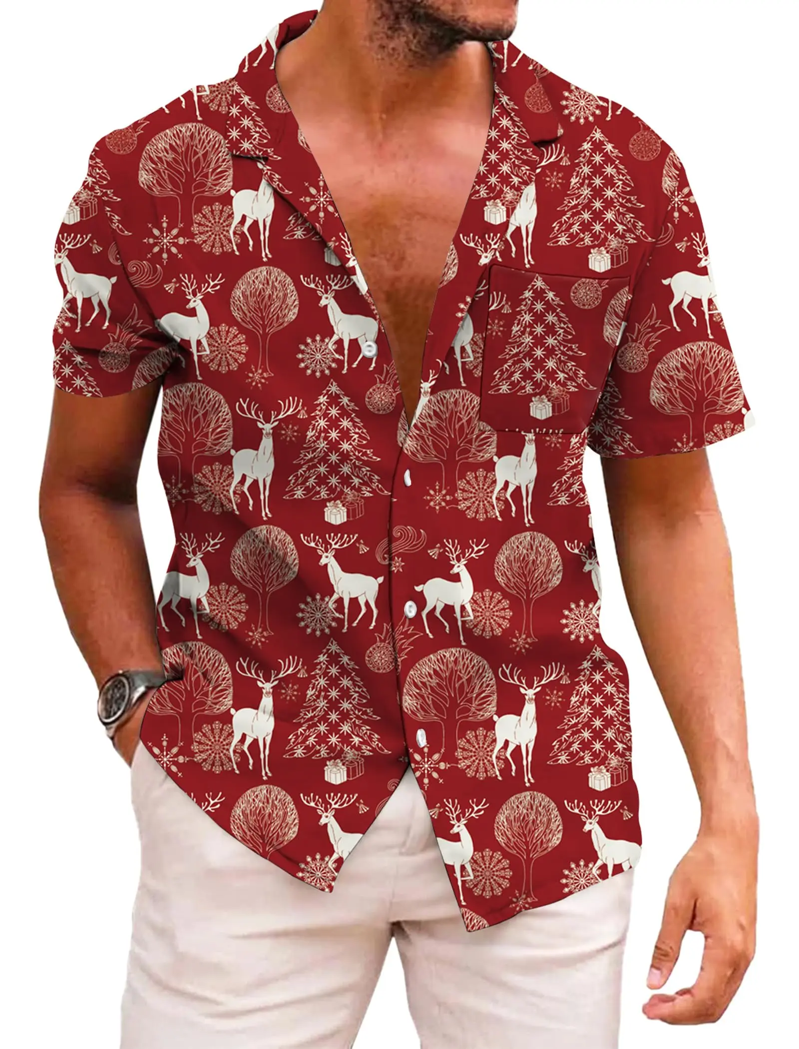 KYKU Hawaiian Shirts for Men Santa Claus Party Casual Button Down Short Sleeve Shirt with Pocket