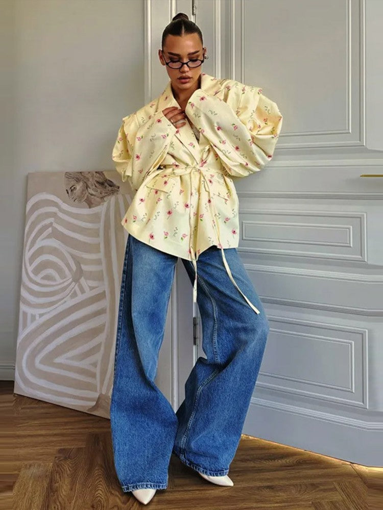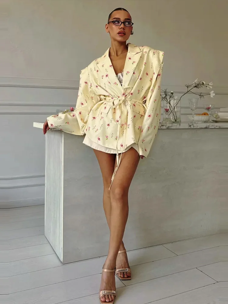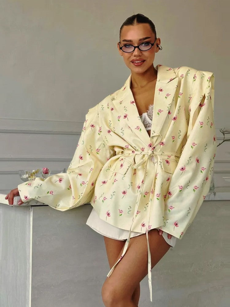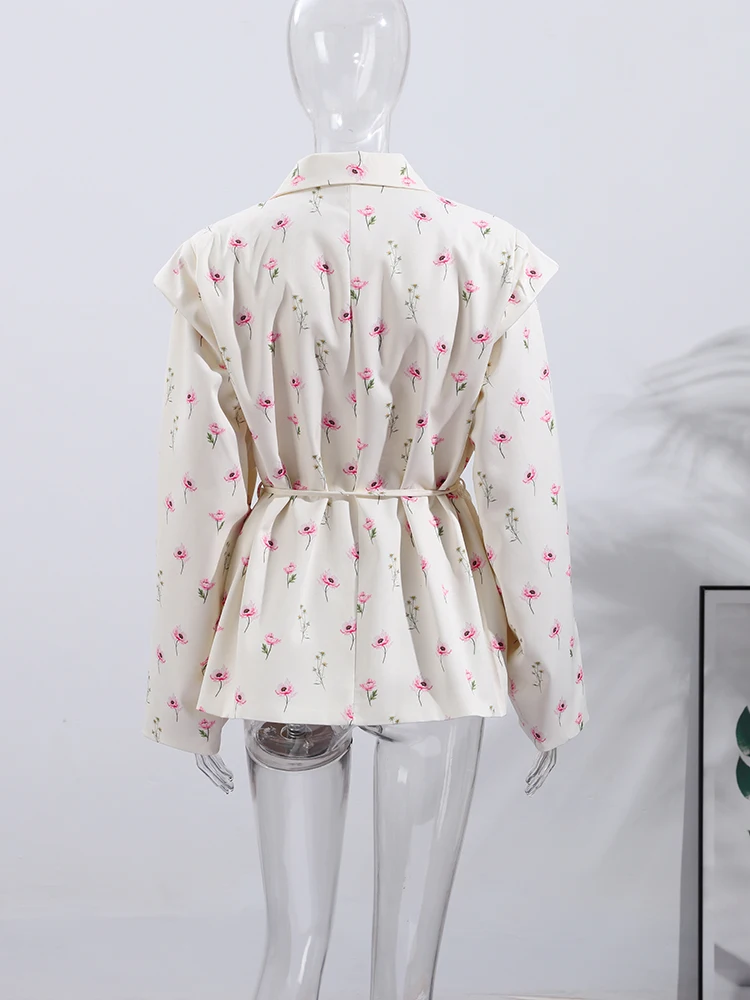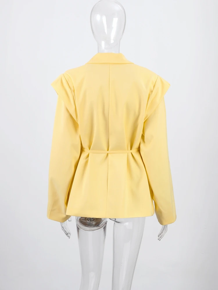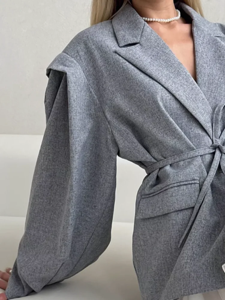 Lace Up Shoulder Pad Blazer Coat Women Elegant Turn-down Collar Long Sleeve Pockets Slim Fit Coats Chic Ladies Commute Outerwear
