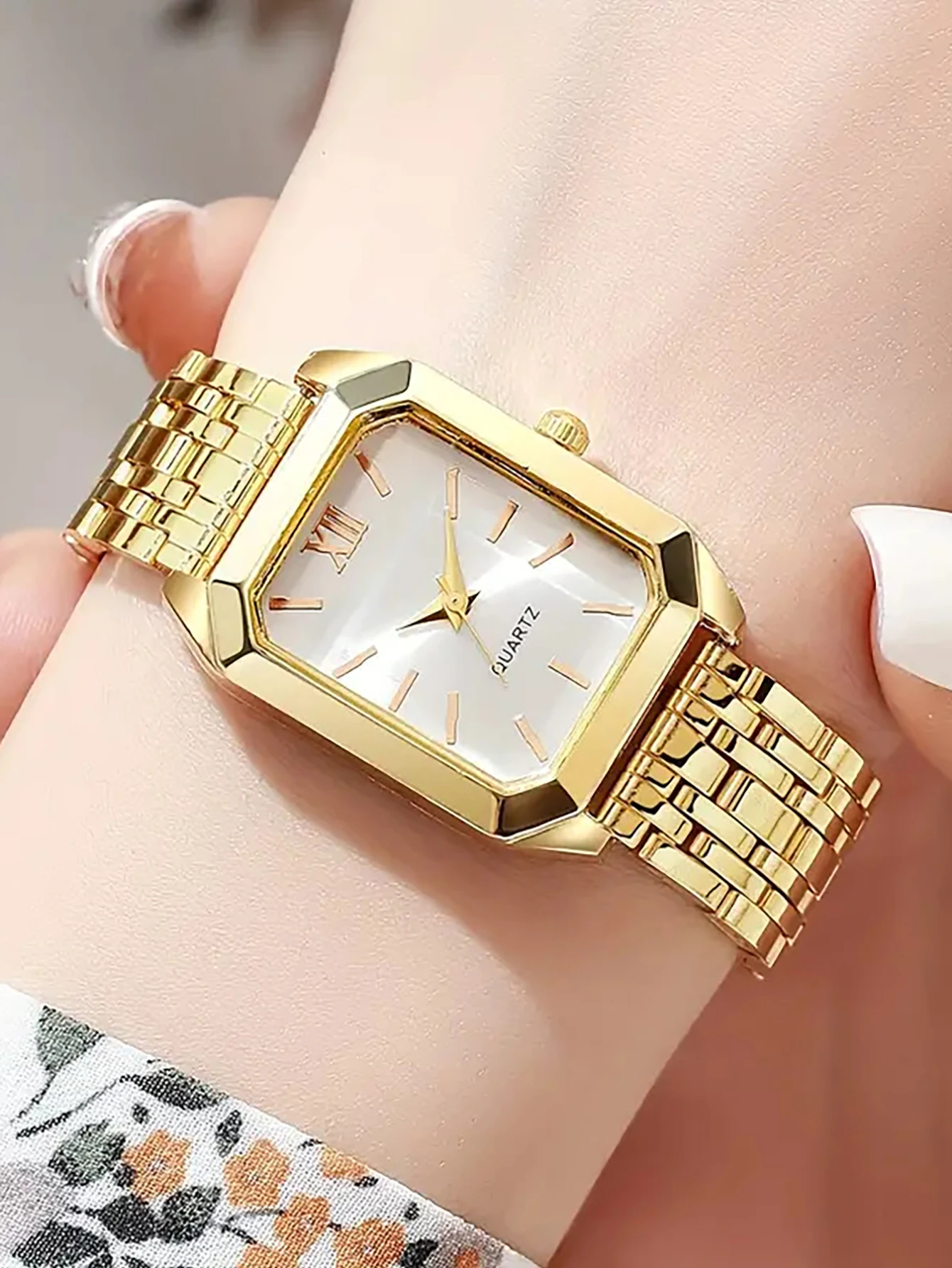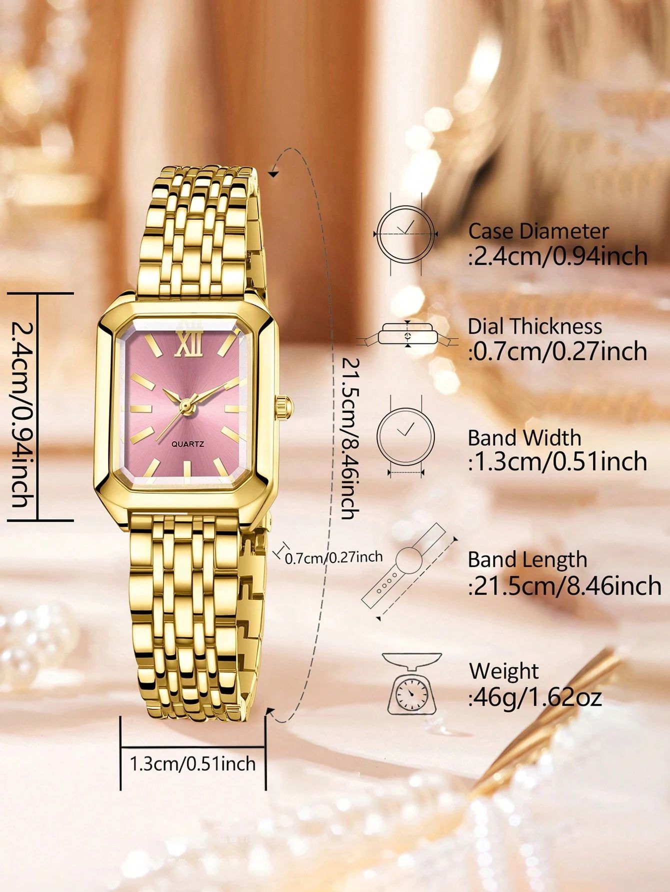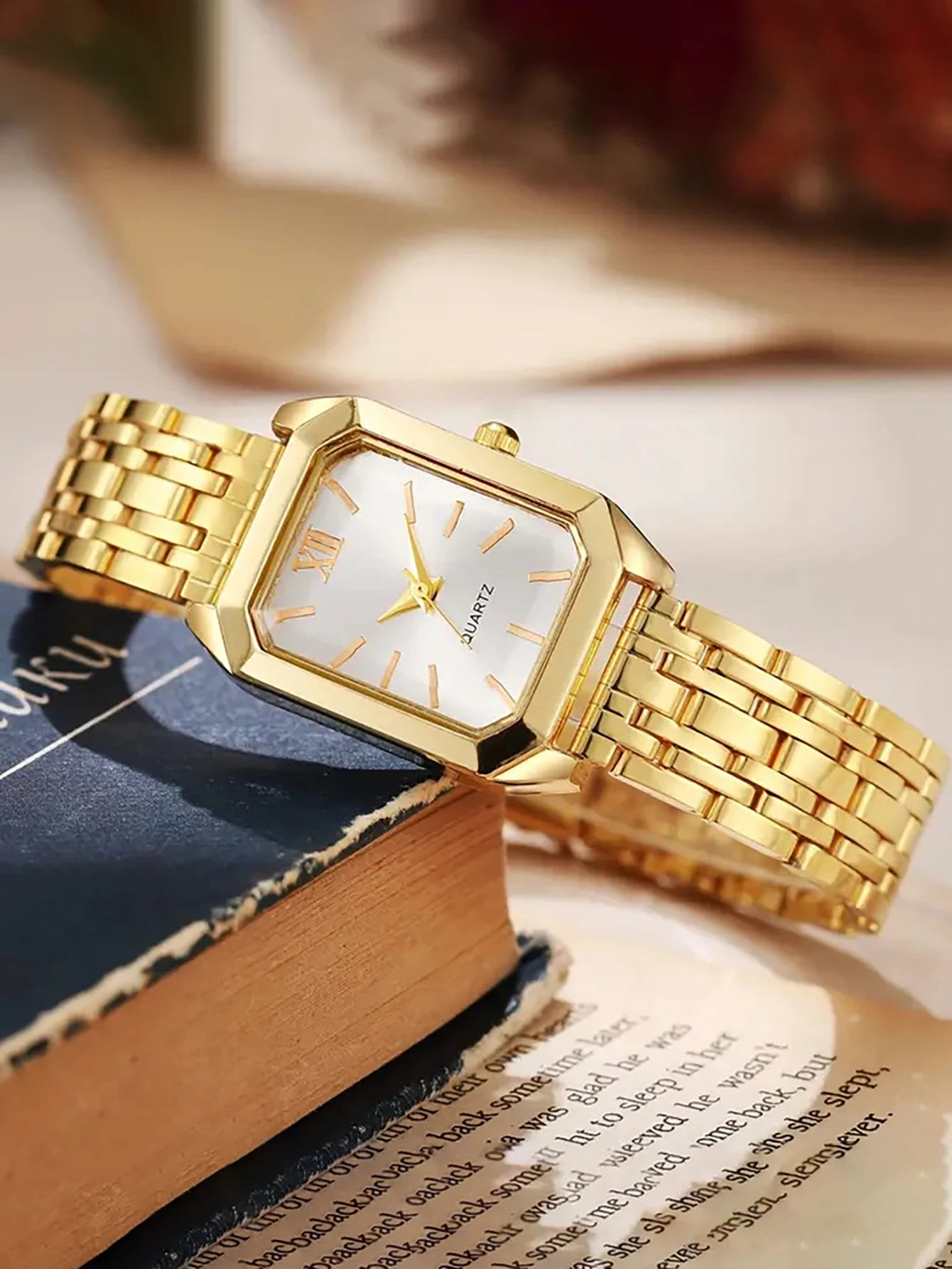 Ladies Quartz Watch Bracelet Set Square Steel Band Minimalist Design Birthday Gift Compact Jewelry Kit without Box