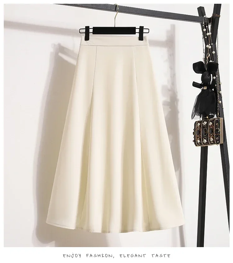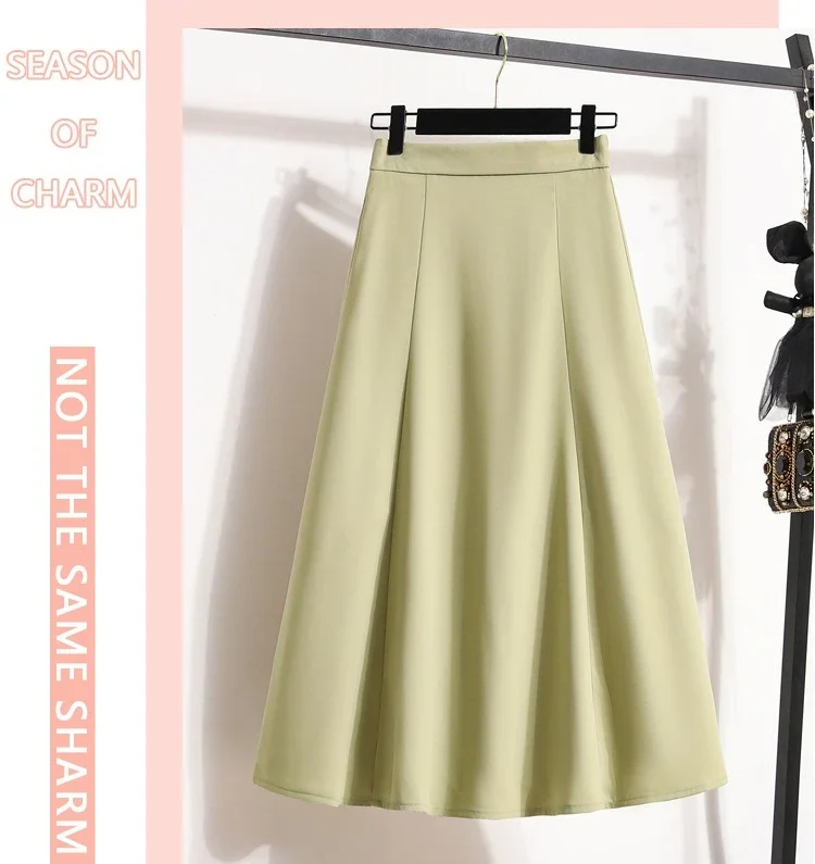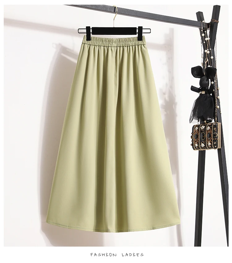 Ladies' Summer High Waist Plus Size Skirts 2026 Mid To Long Flowing Suit Skirt New Style Casual Solid Color A-line Skirt