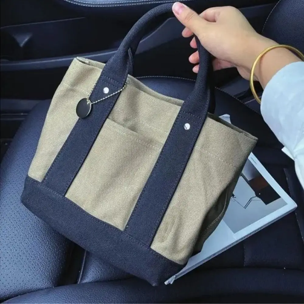 Lady Canvas Tote Bag Handbag Creative Large Capacity Multi Compartment Carrying Bag Student Book Pocket Travel Bag Grocery Bag