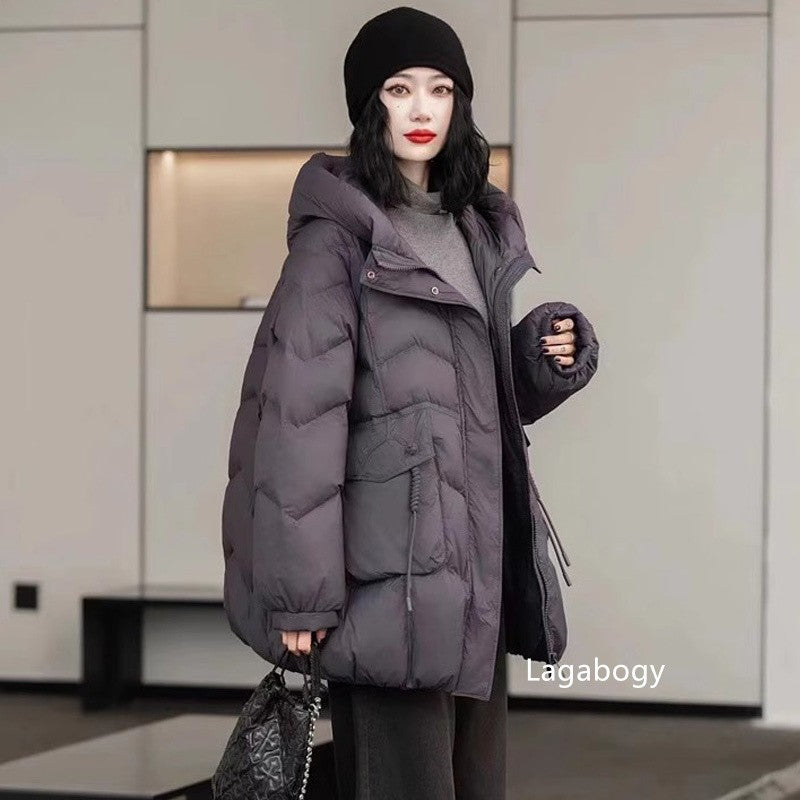 Lagabogy 2025 Women Autumn Winter Vintage Style Loose Casual Mid-Long Hooded Warm Puffer Coat Female 90% White Duck Down Jacket