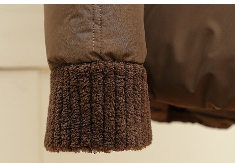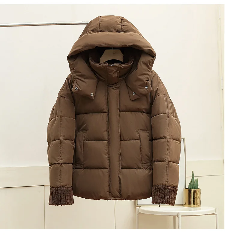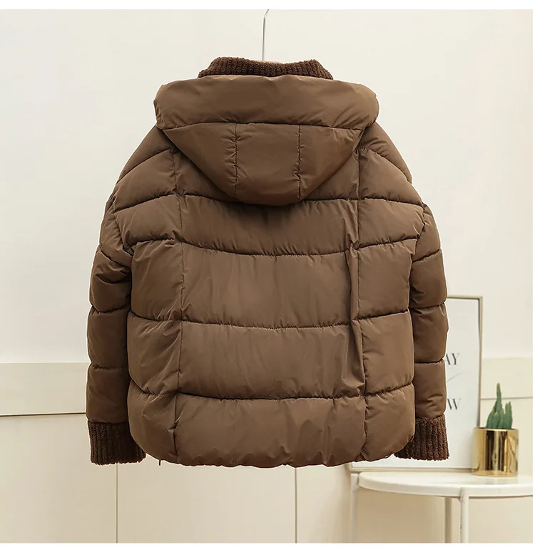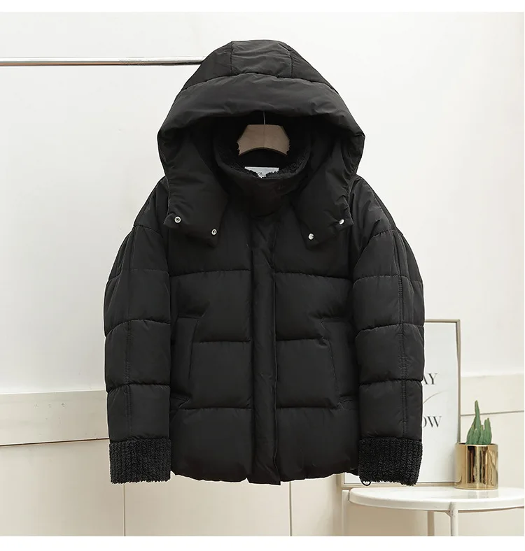 Lambswool Patchwork Thick Women Winter Coat 2025 New Fashion Hooded Puffer Jackets Cotton Padded Short Parkas