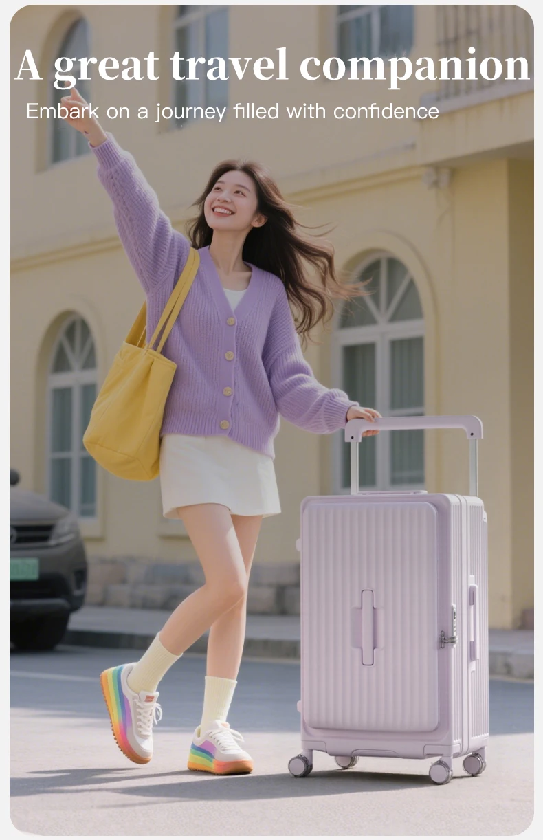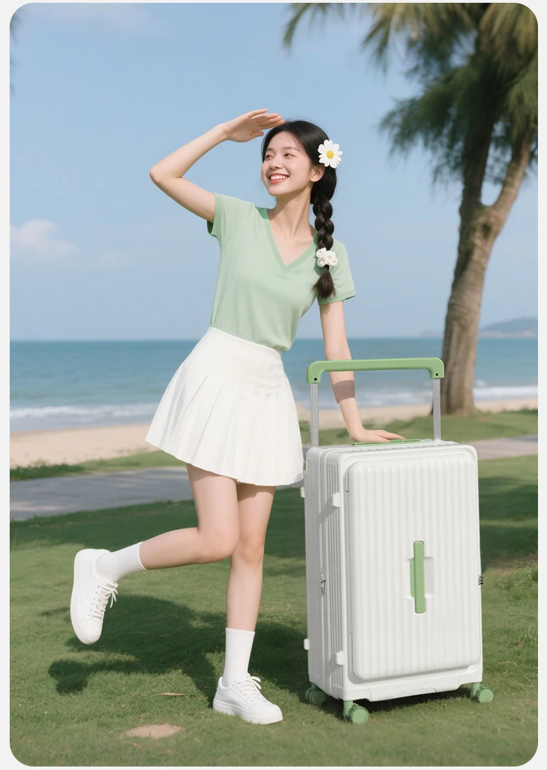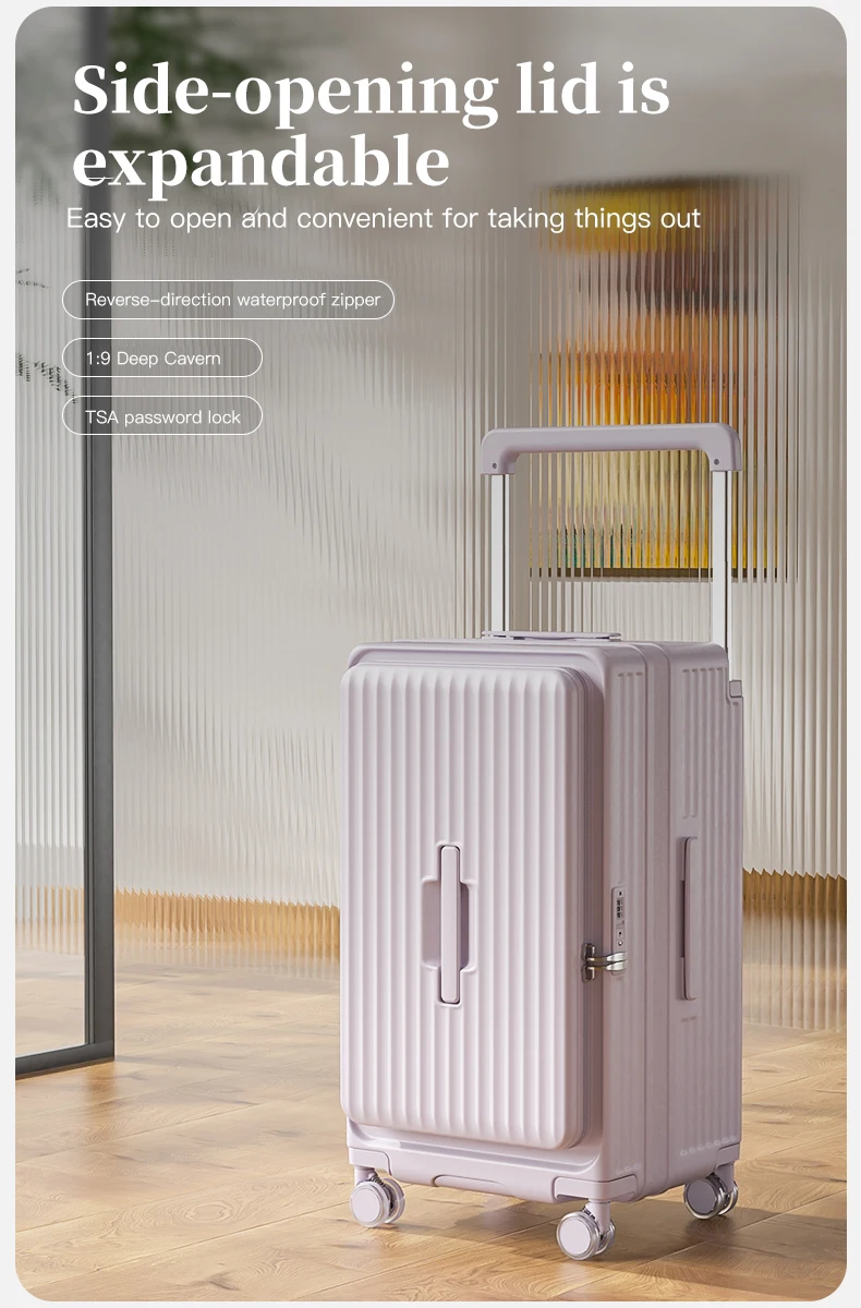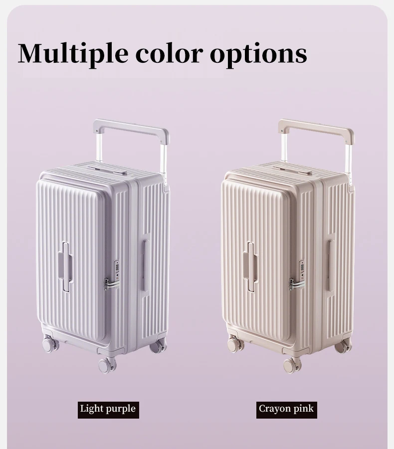 Large-capacity expandable luggage, front-opening thickened trolley case, 24-inch - resistant travel suitcase, 30-inch student