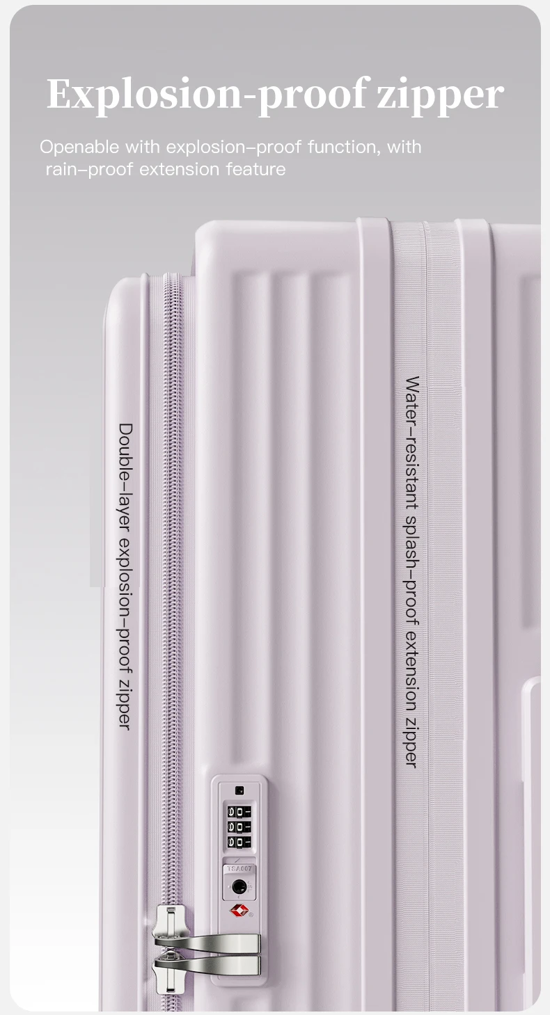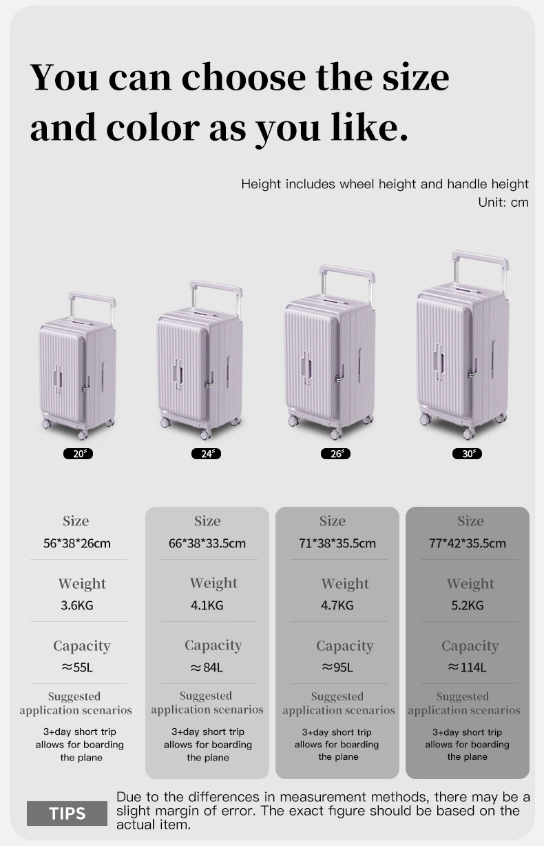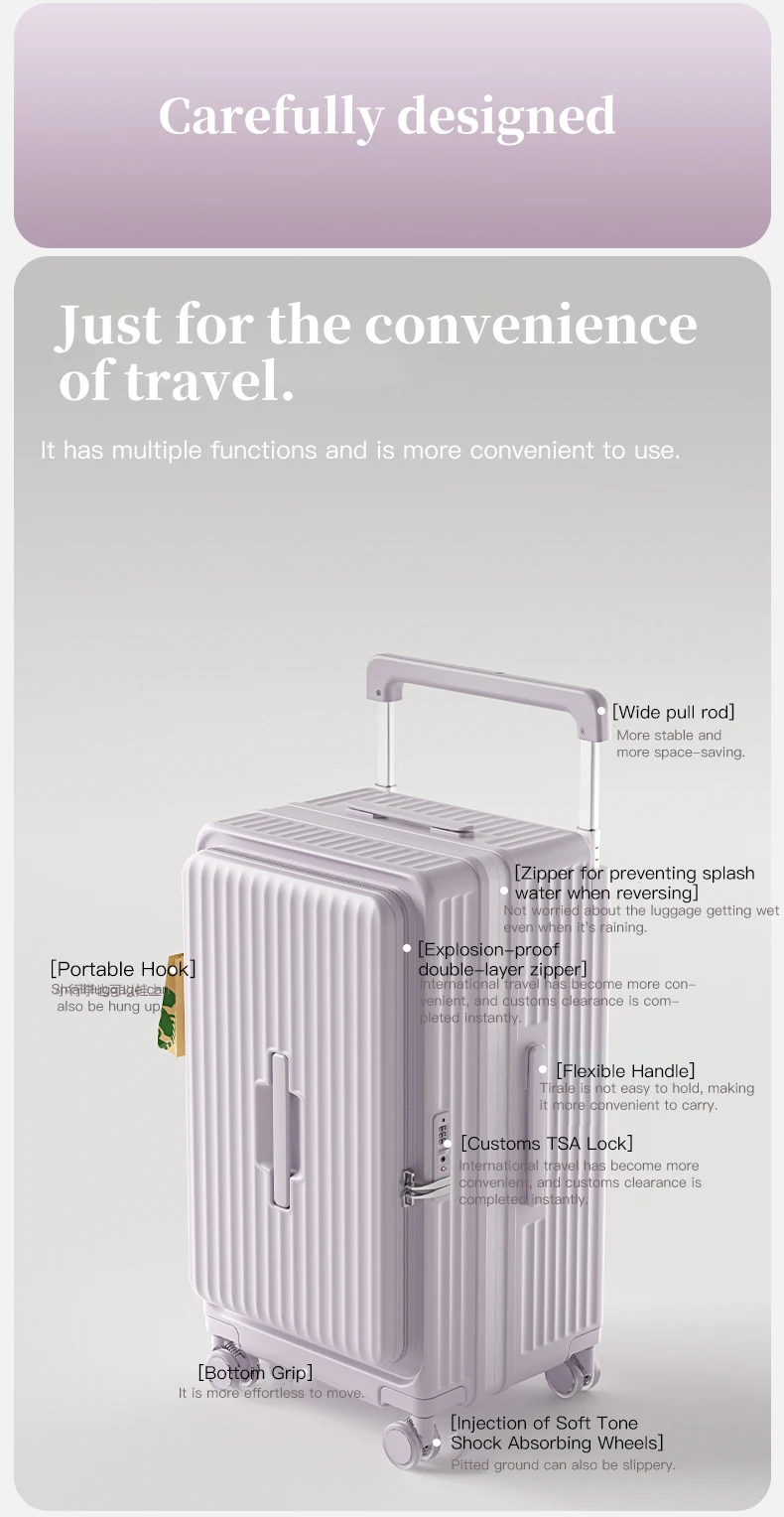 Large-capacity expandable luggage, front-opening thickened trolley case, 24-inch - resistant travel suitcase, 30-inch student