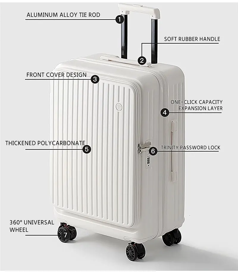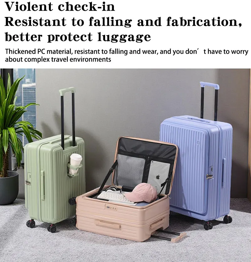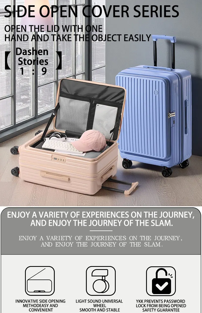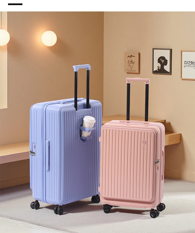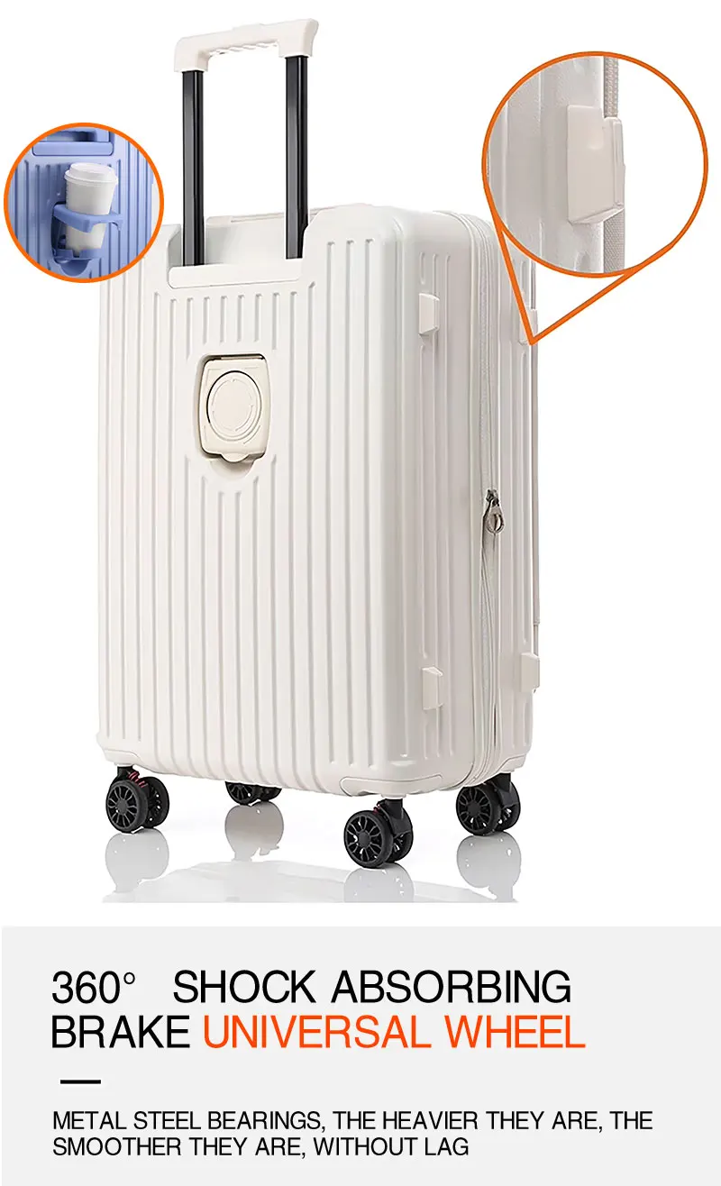 Large Capacity Expandable Suitcase Multi-Function Side Opening Luggage Boarding Case Cup Holder Shock-Absorbing Brake Wheels