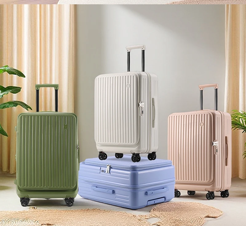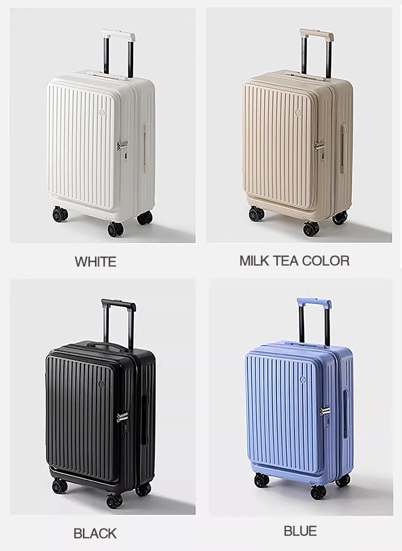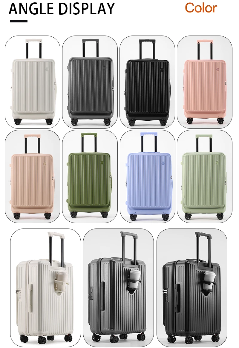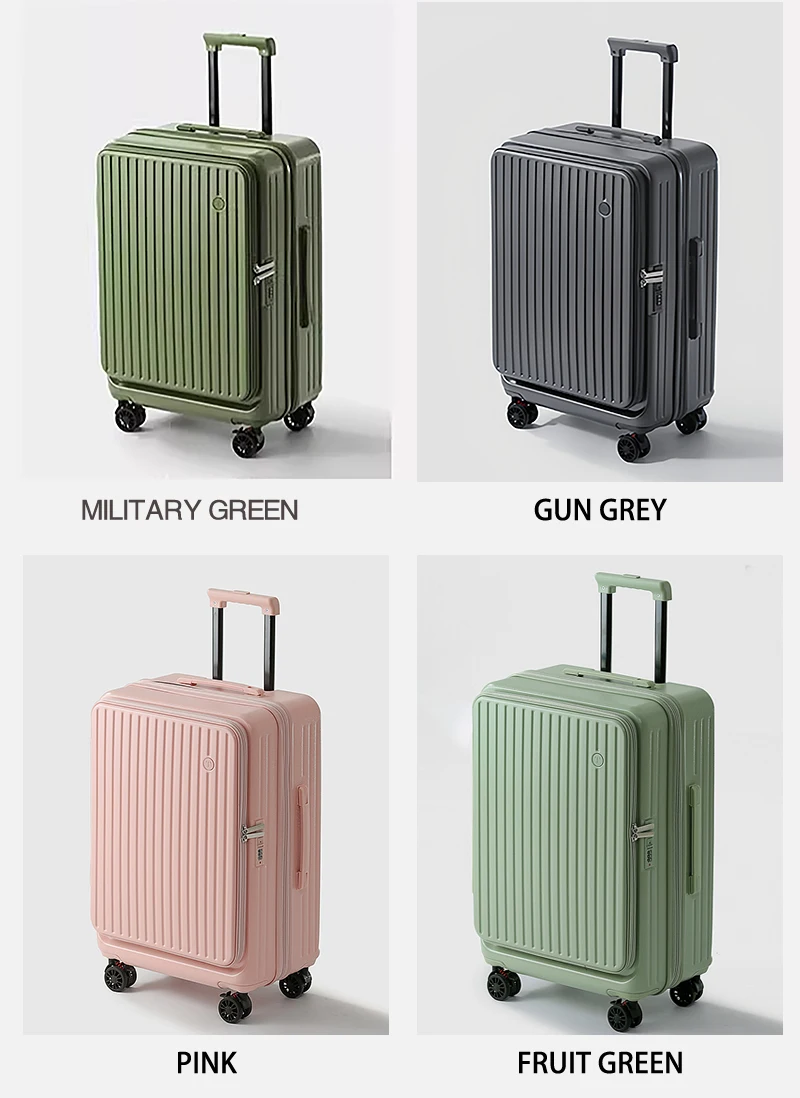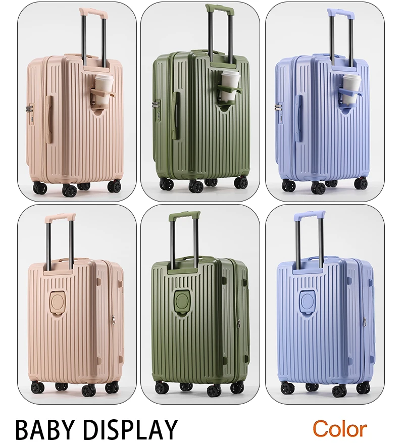 Large Capacity Expandable Suitcase Multi-Function Side Opening Luggage Boarding Case Cup Holder Shock-Absorbing Brake Wheels