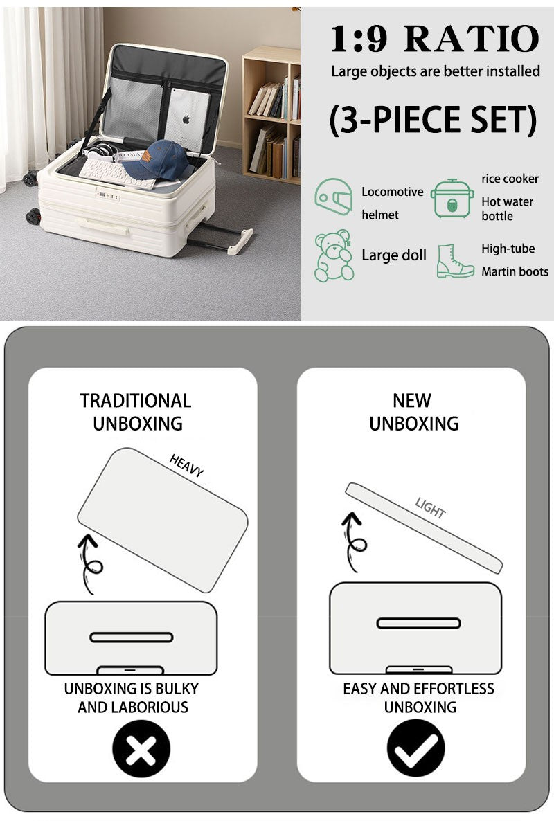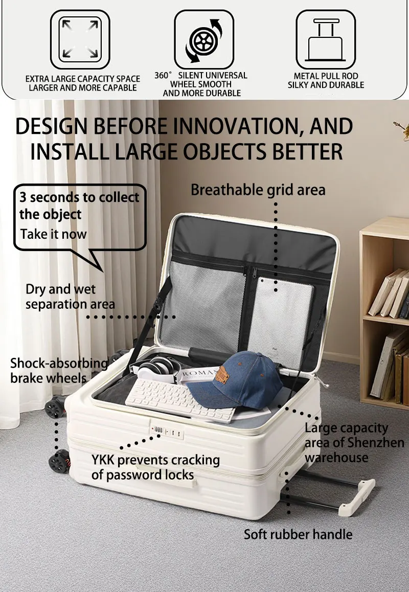 ✅【Smart Front Access Design】 – 180° fully open front cabin design, open at one pull, clothing, documents, and electronic equipment are in order, saying goodbye to rummage through boxes and cabinets, customs inspection is more convenient.