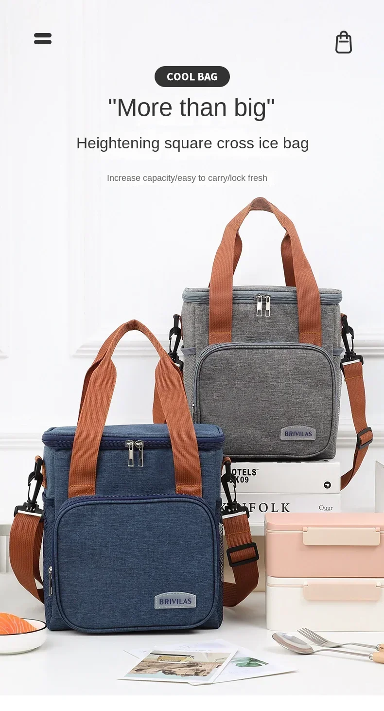 Large Capacity Lunch Bag Thermal Insulation Thickened Waterproof Bags Portable With Handle Crossbody Bag Waterproof Oxford Cloth