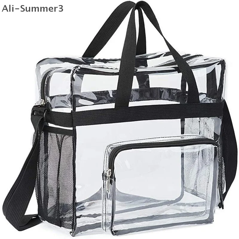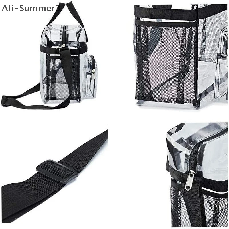 Large Capacity PVC Transparent Bag Portable Washing Bag Clear Tote Multi Pocket Handbag