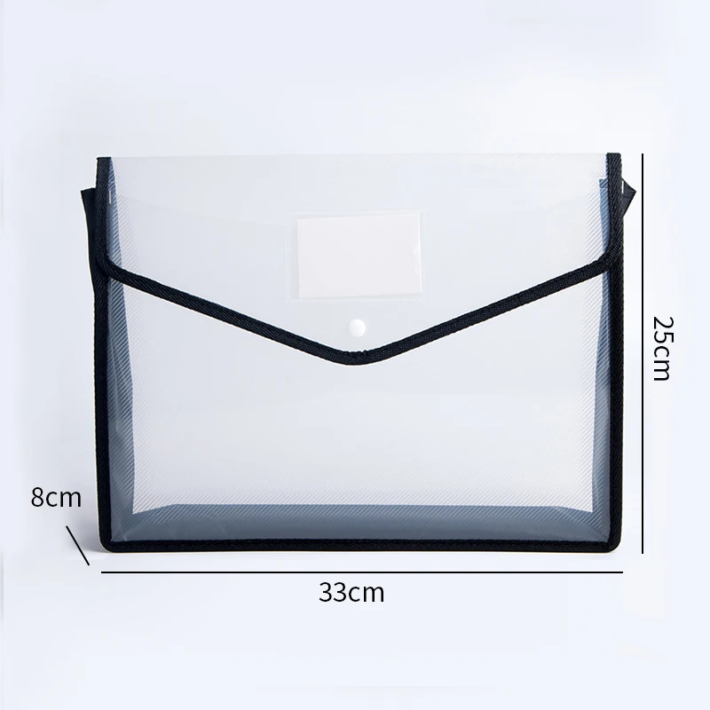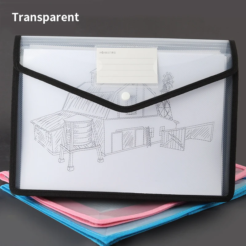 Large Capacity Waterproof File Transparent A4 Folder Press Button Plastic Data Document Bag Pocket Storage Office Supplies