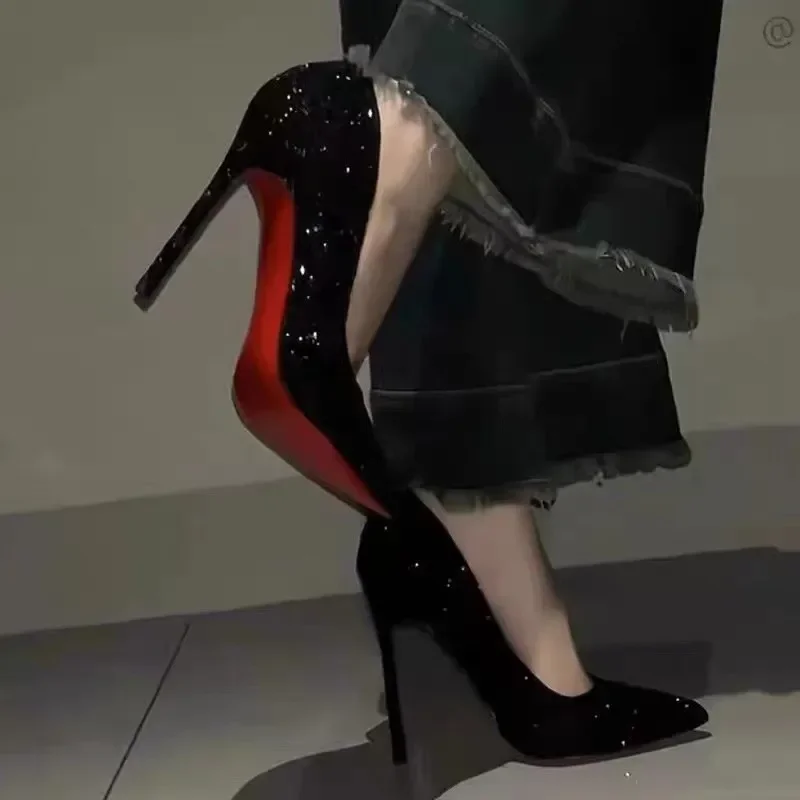 Large Size 2024 Stiletto High Heels Fashionable Sexy Sequins Banquet Professional Ladies Shoes High Heels Single Shoes