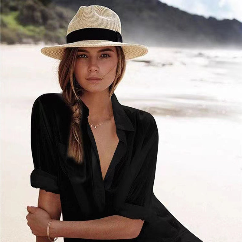 Large Size 56-58 59-60cm New Natural Panama Straw Hat Summer Men Women Wide Brim Beach UV Protection Fedora Sun Hat Wholesale