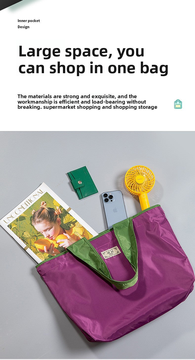 Large-sized drawstring eco-friendly supermarket shopping bag fashionable single-shoulder bag foldableportable handbag,waterproof