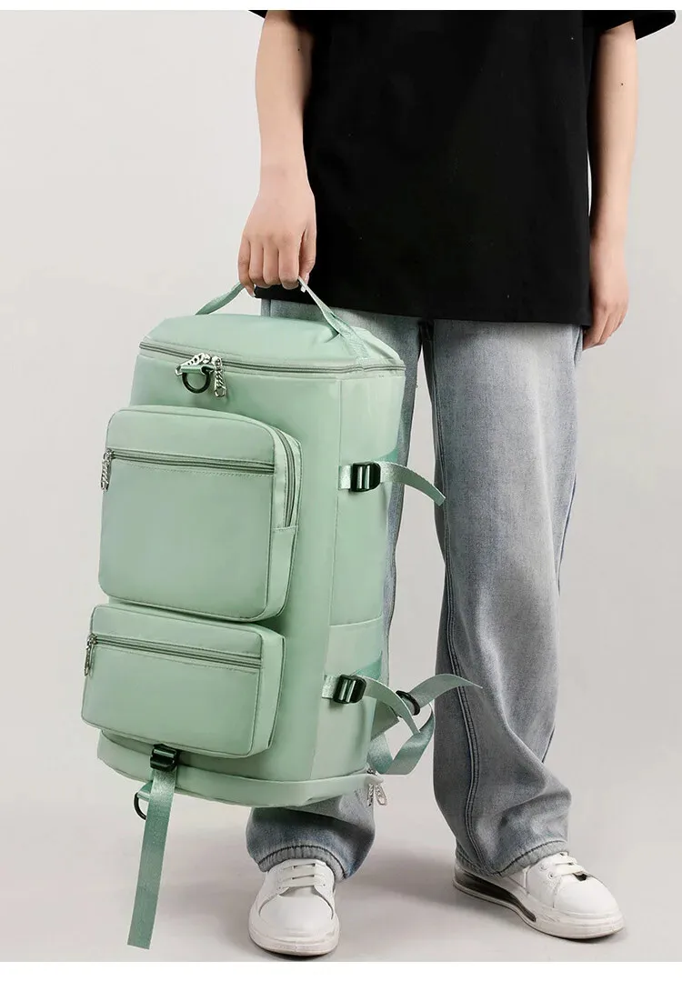 Large Space Fashionable Simple Travelling Backpack with Independent Shoe Compartment Casual Multi-pocke Short Trip Bag