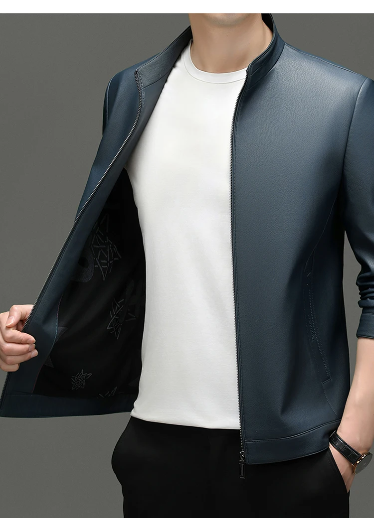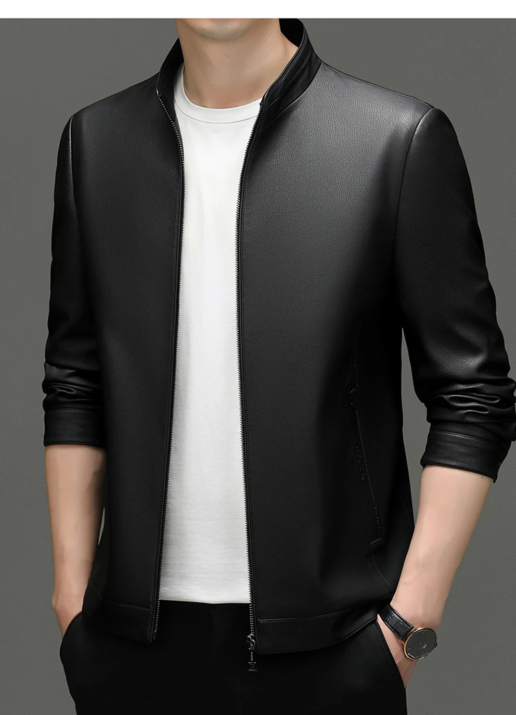 Leather Fashion Handsome Trend Solid Color High Quality Male Stand Collar Dad Father Middle-aged Leather Autumn and Winter Coat