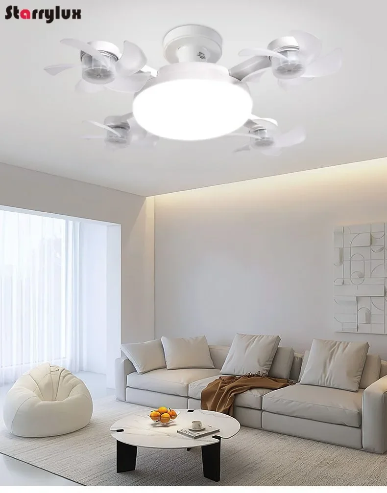 LED Smart Silent Fan Light with E27 Screw Creative 3/4/5 Head Remote-Controlled 3-Speed Adjustable for Home Living Room Bedroom