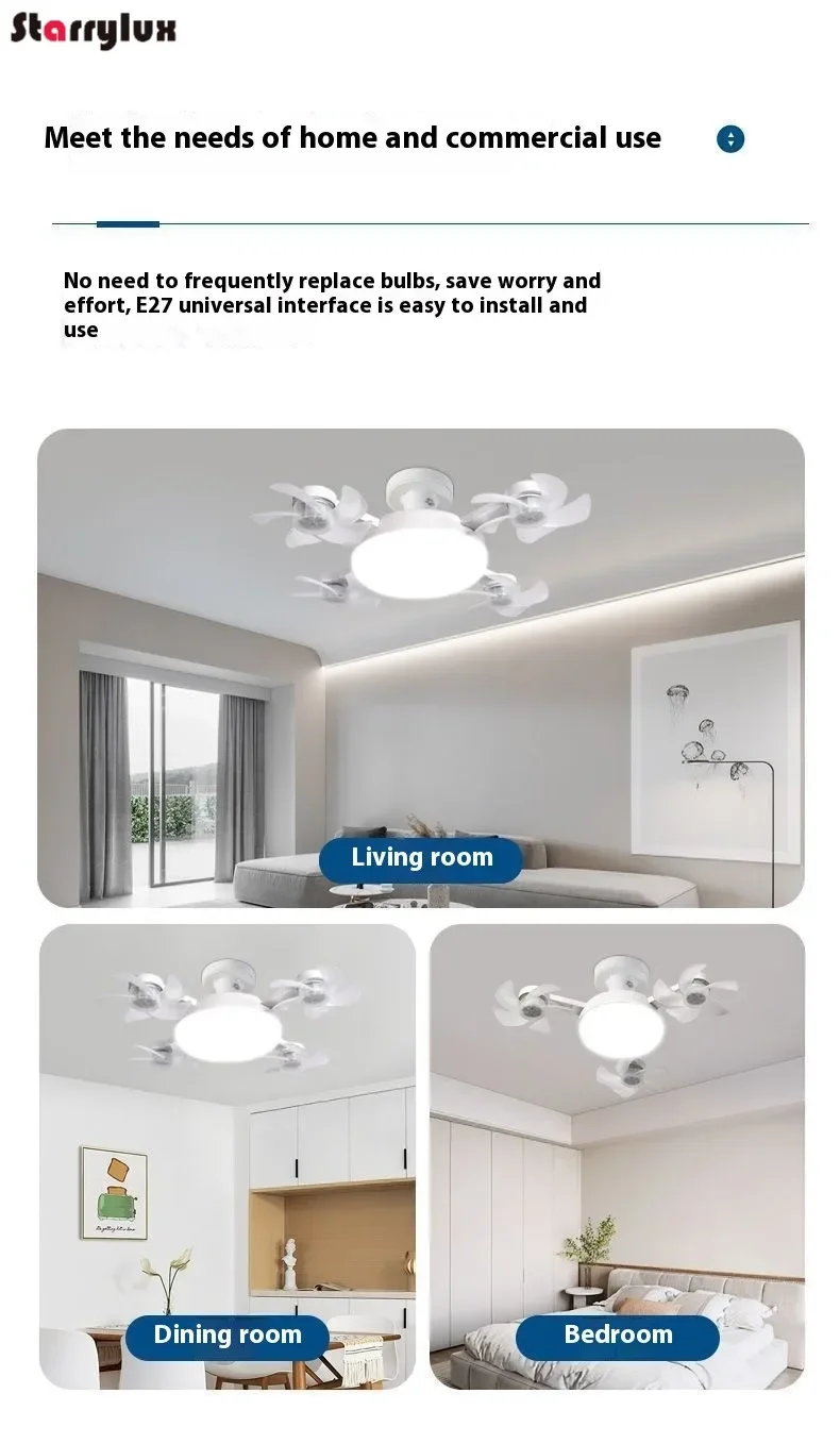 Ideal for: Small spaces needing combined lighting + airflow.Low noise& energy-saving!