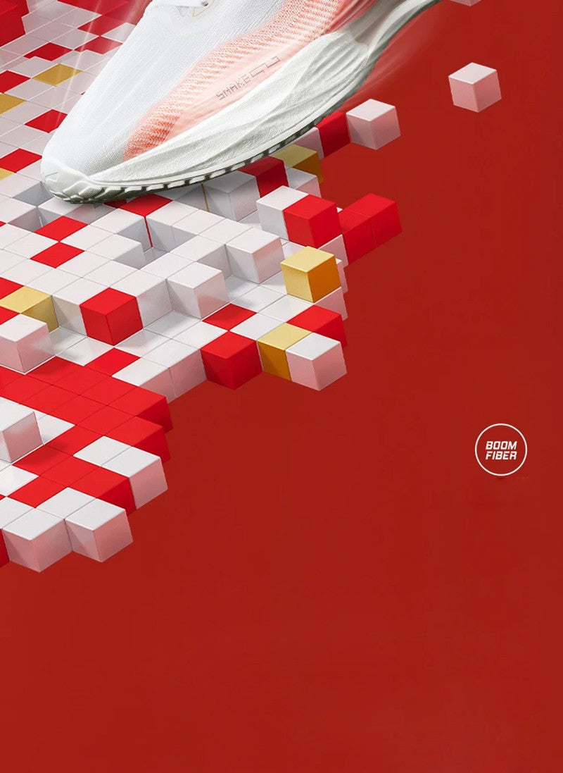 BOOM FIBER: BOOM FIBER is a new type of thermoplastic elastomer that can be prepared into lightweight "silk" through advanced spinning technology. Its flexibility, elasticity and durability are superior to ordinary fibers, and the feel is very comfortable. By combining "silk" with advanced weaving technology, a lightweight, breathable, and comfortable shoe upper can be obtained, which is not easily deformed and has a longer service life.