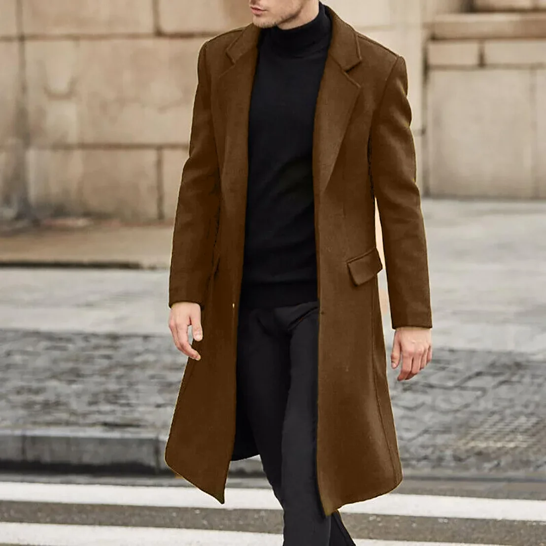LIBIELIY Autumn And Winter Casual Men's Clothing, British Style Woolen Overcoat, New Korean Style Solid Color Long Windbreaker S