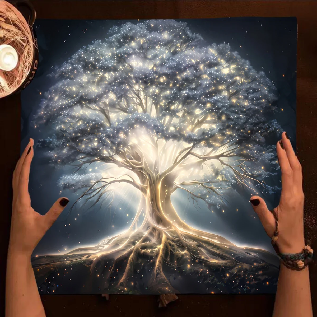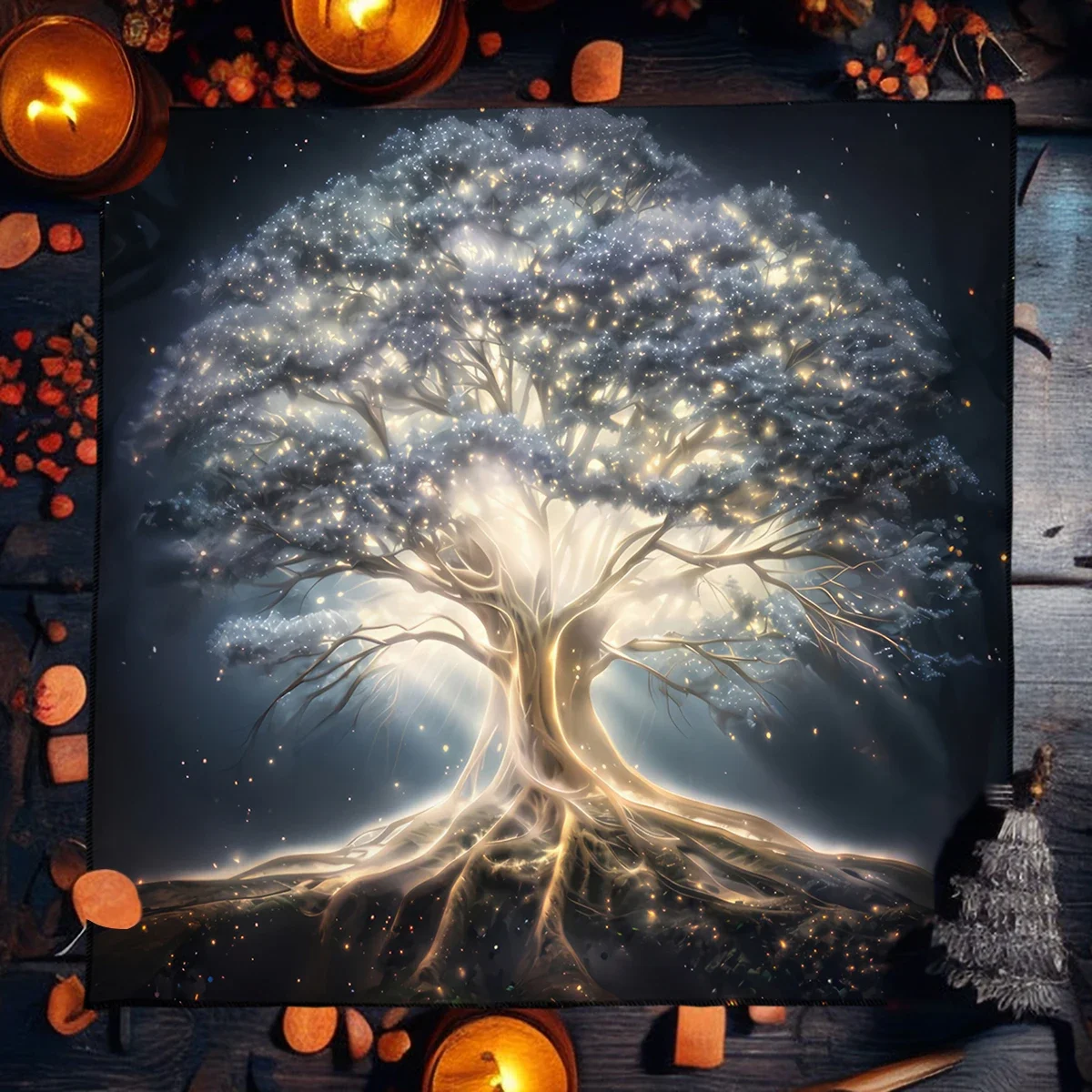Life Tree Tarot Cloth Altar Cloth Starry Colorful Tree of Life Tarot Tablecloth for Reading Witchcraft Astrology Oracle Card Mat