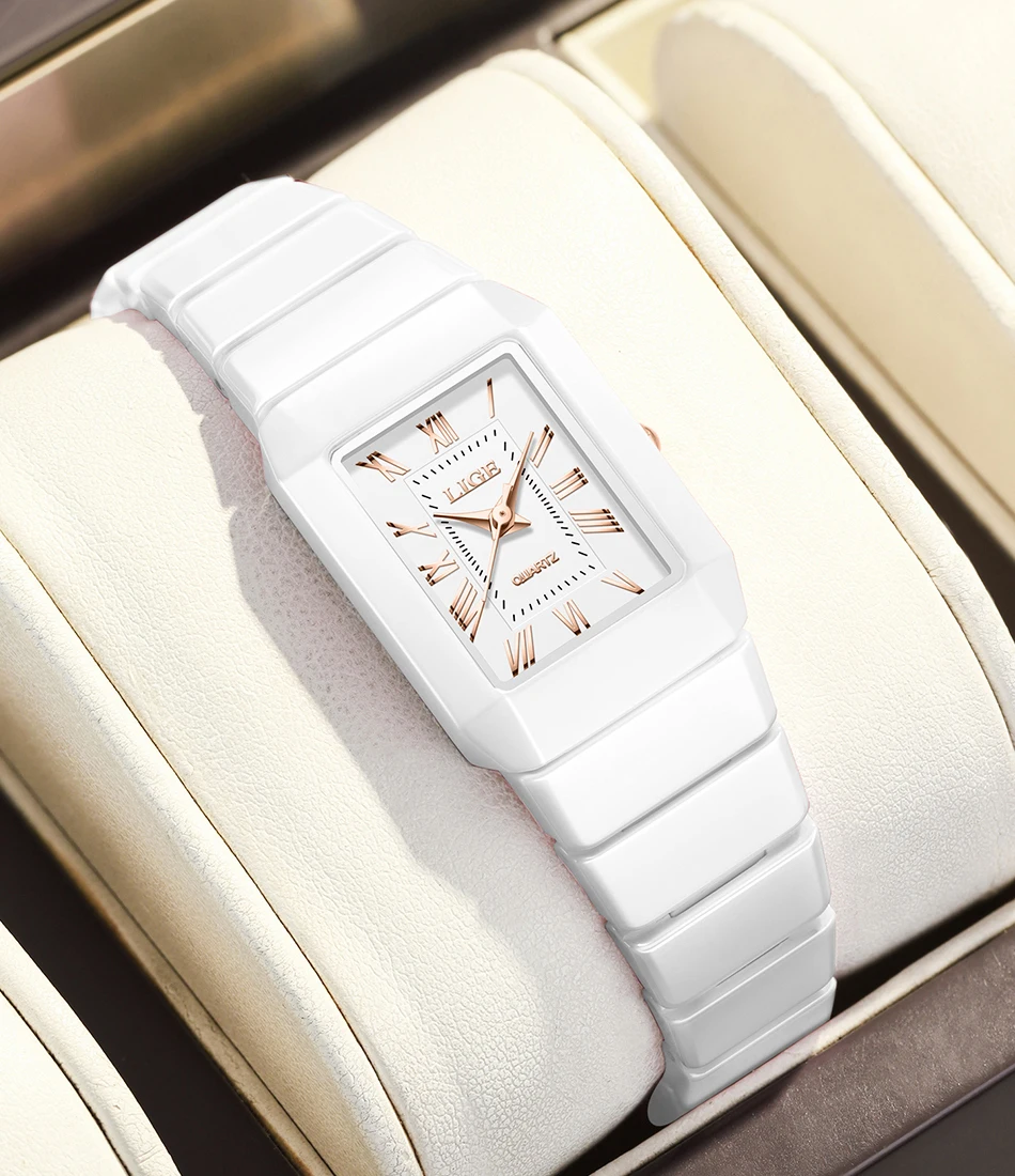 LIGE 2026 Women's Watch ceramic fashion quartz wristwatch elegant waterproof vintage watches ultra-thin Watch for Women reloj