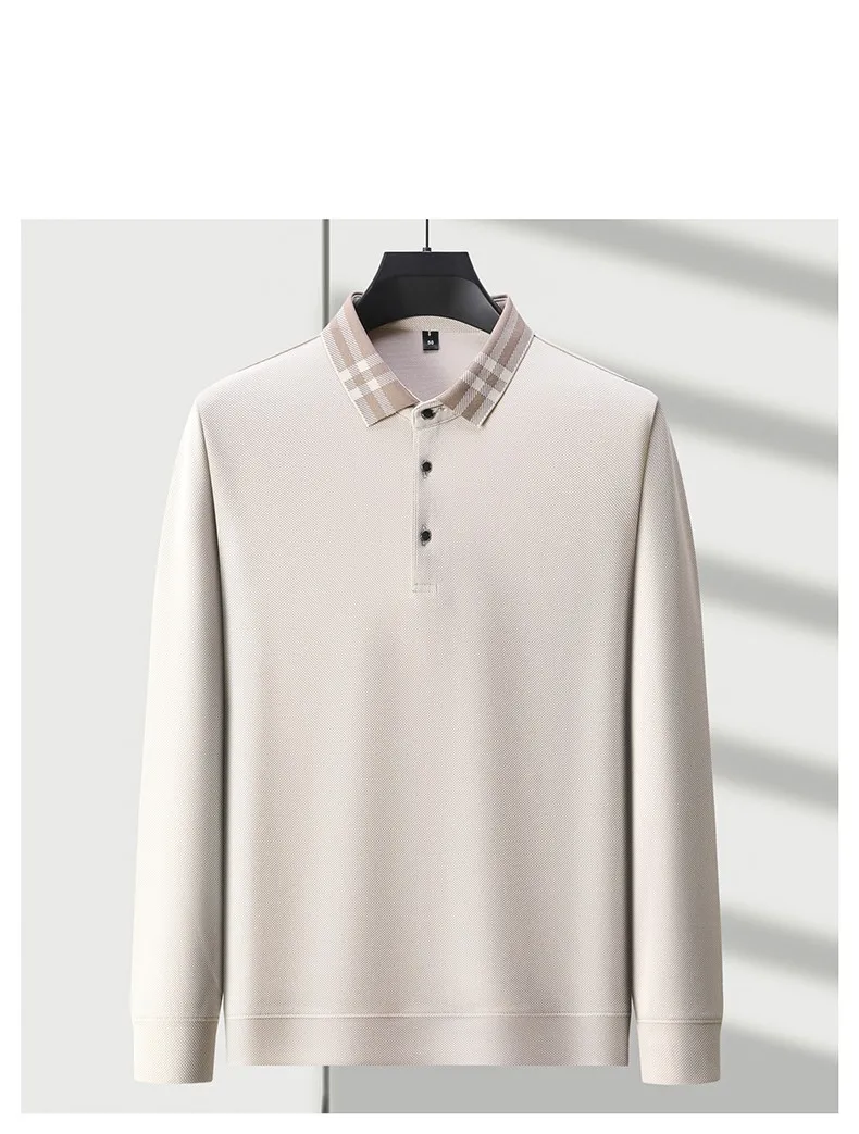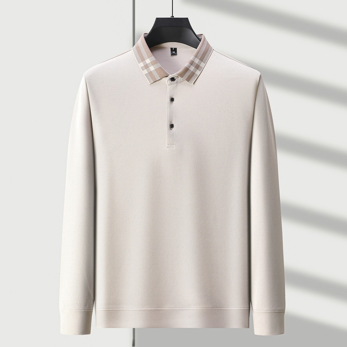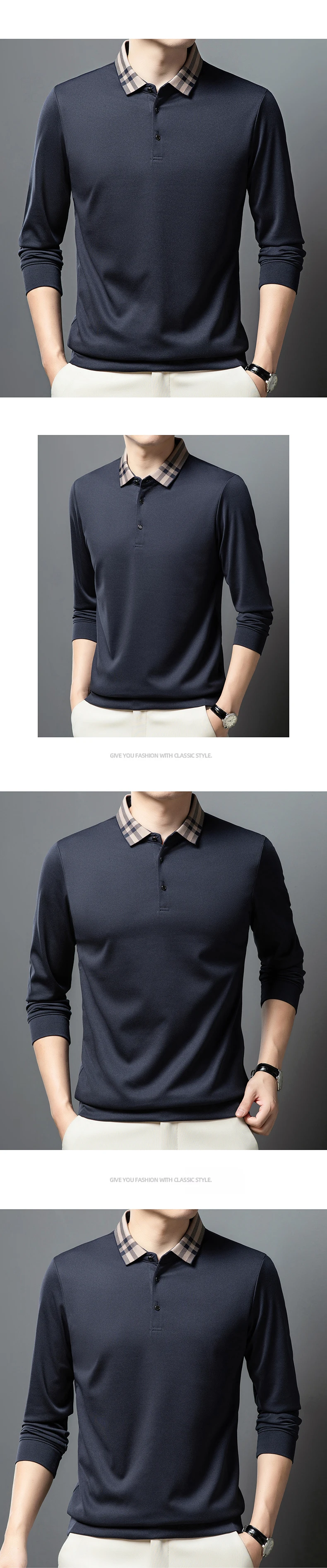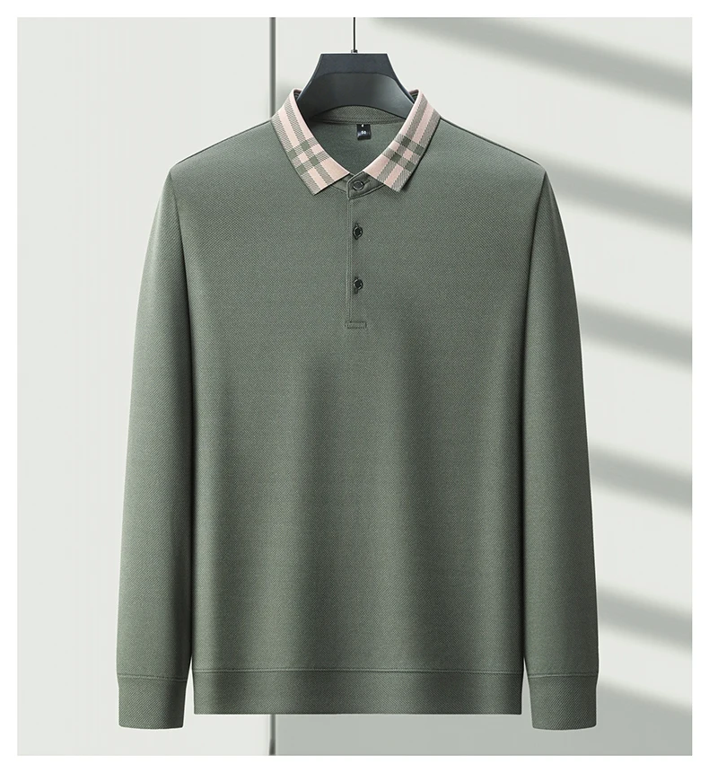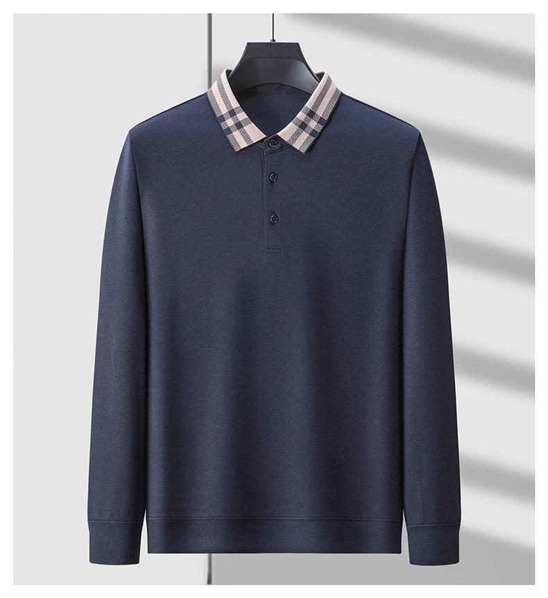 Light luxury brand polo shirt long sleeved spring and autumn new style comfortable and breathable casual striped lapel T-shirt