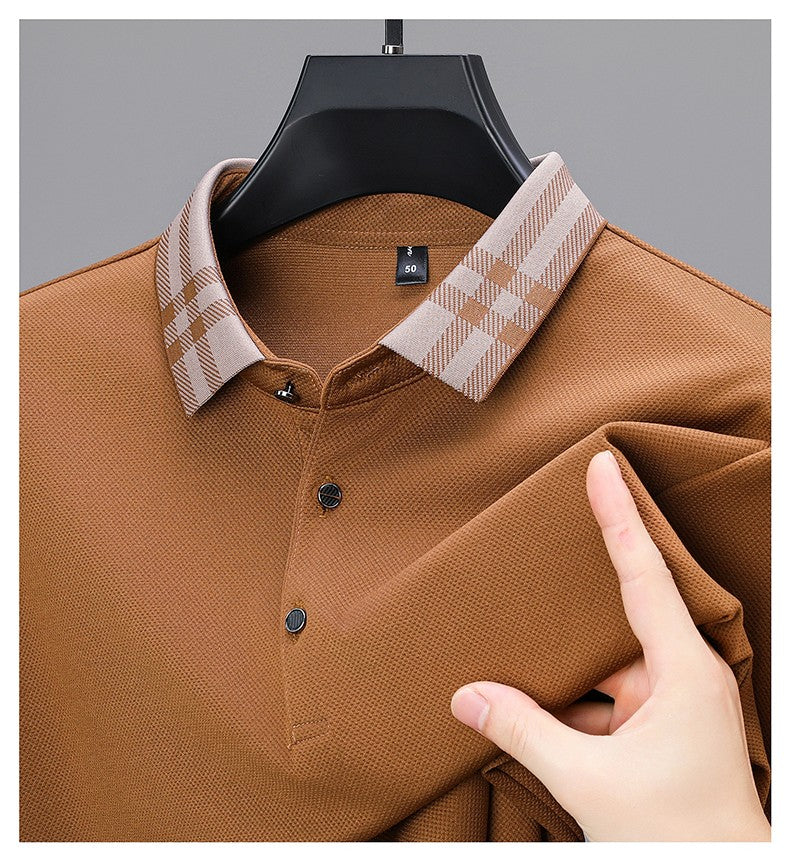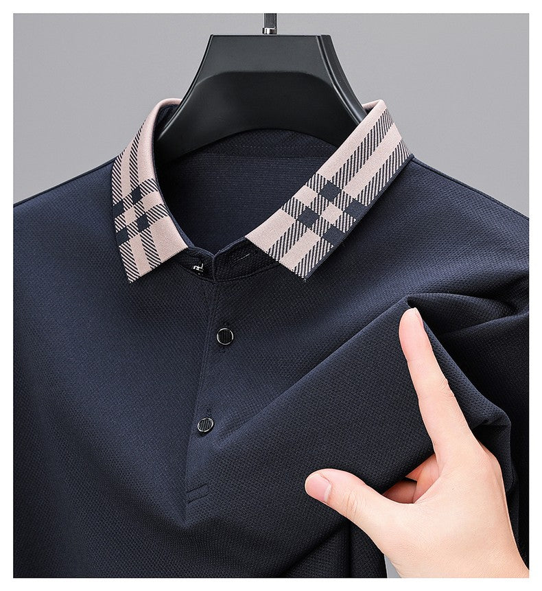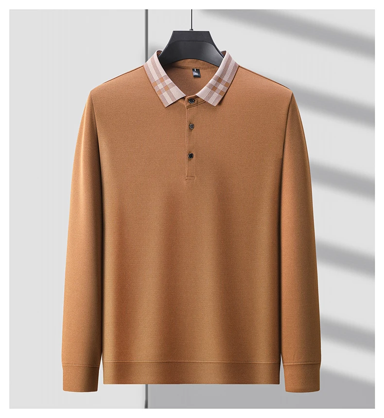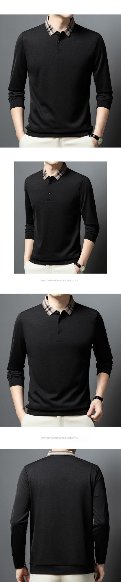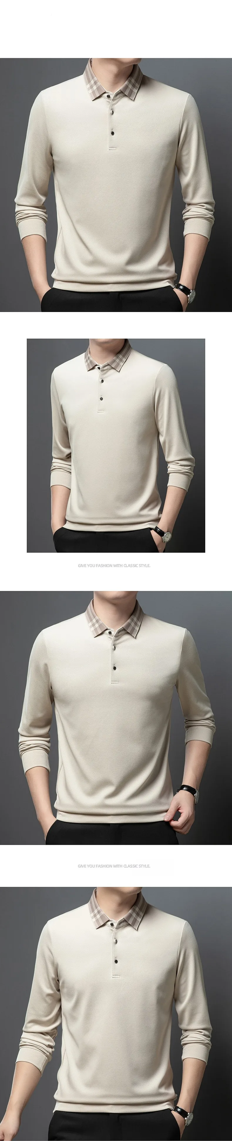 Light luxury brand polo shirt long sleeved spring and autumn new style comfortable and breathable casual striped lapel T-shirt