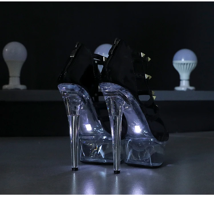 Light Up Glowing Sandals Women Transparent Platform Luminous Wedding High Heels Fashion Rivet Summer Nightclub Stripper Shoes