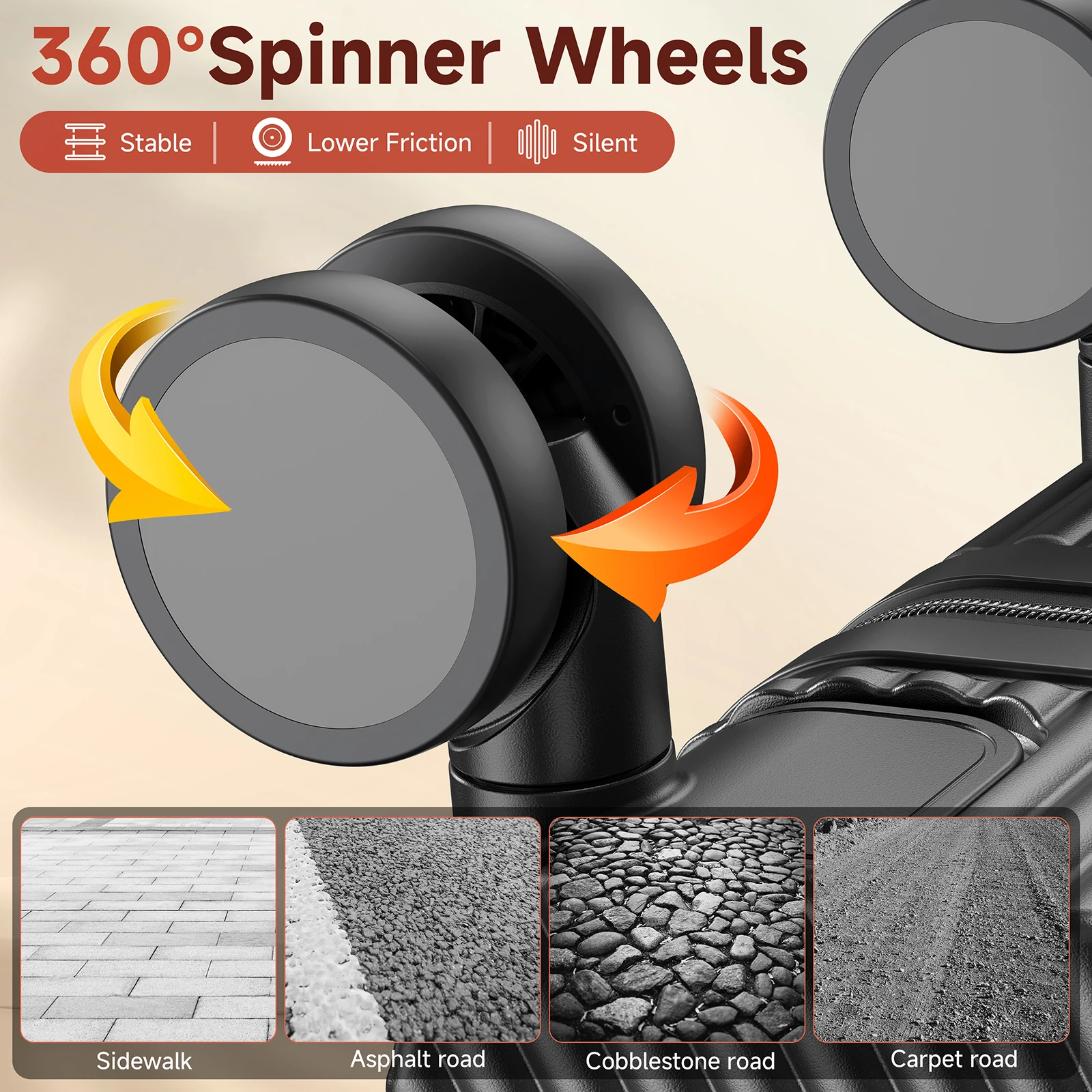 【 Other Accessories】The interior of the luggage features multiple zippered pockets for easy organization. It also features a TSA-approved combination lock and USB port, 360°Double wheels and noiseless spinner designed to increase maneuverability