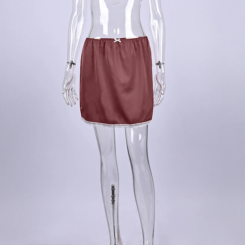 Linad Summer Sexy Satin White Mini Skirts For Women Street Chic Red High Waist S