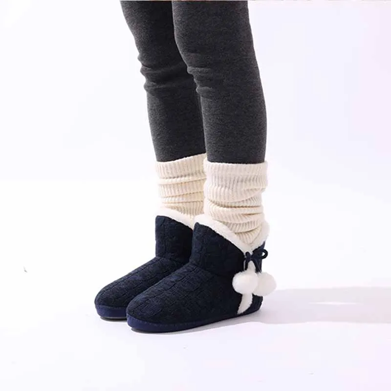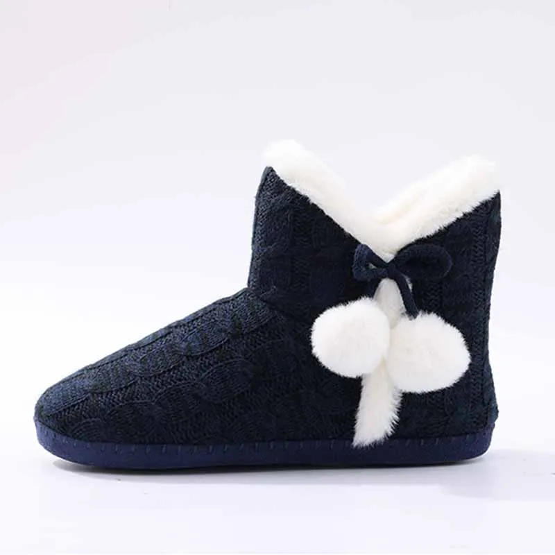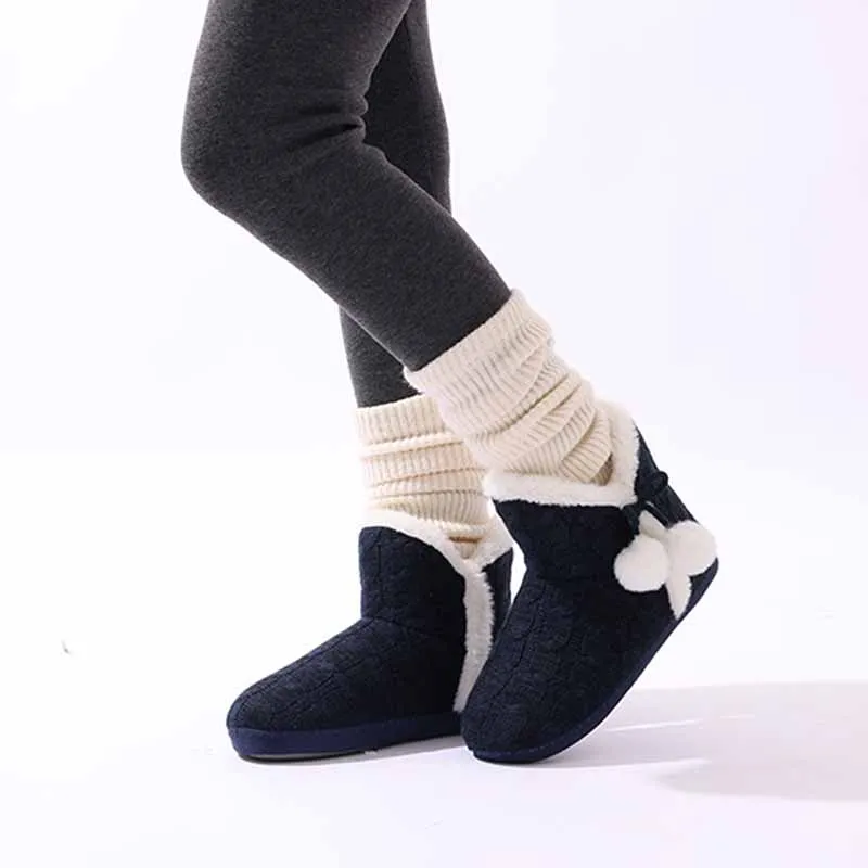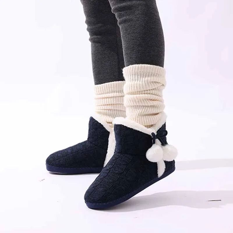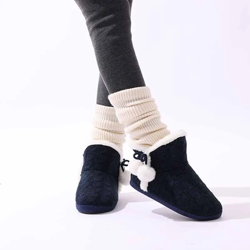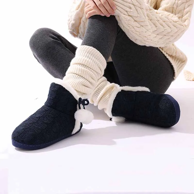 Litfun Winter Warm Knit Plush Snow Boots For Women Outdoor Soft Sole Non-slip Furry Cotton Boots Indoor Home Casual Cotton Shoes