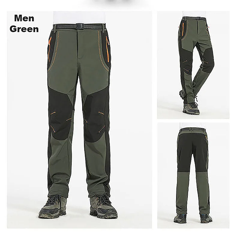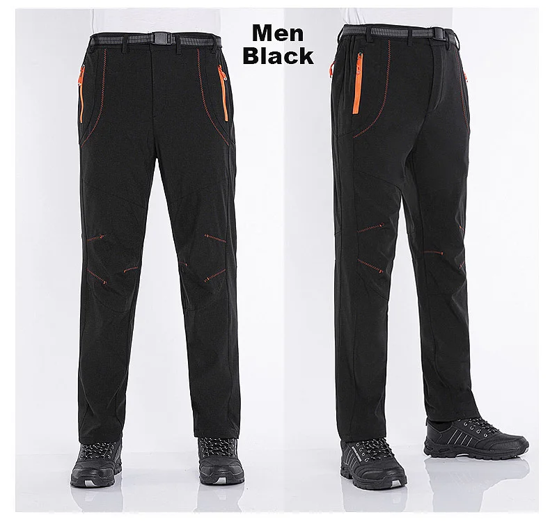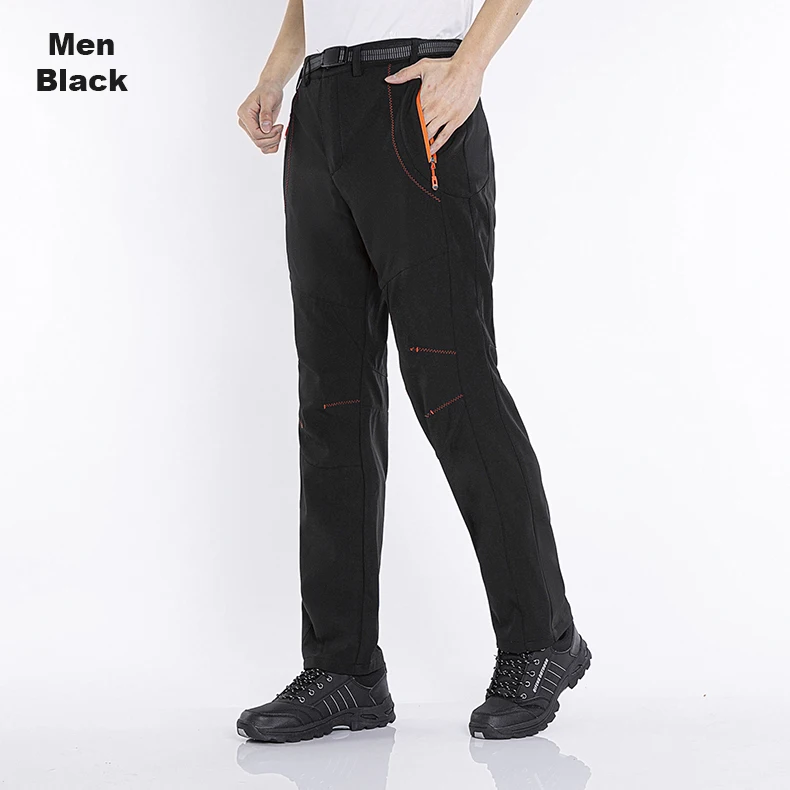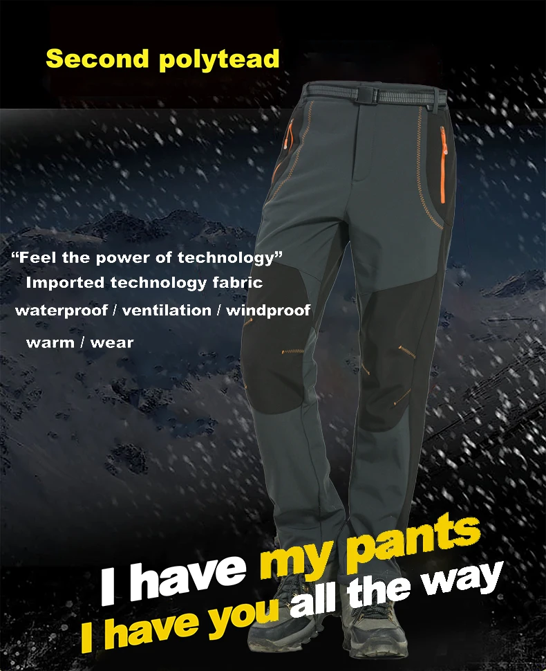 2. Name: Men Winter Fleece Pants Warm Waterproof Hiking Pants Outdoor Camping Climbing Skiing Soft Shell Windproof Rain Trousers