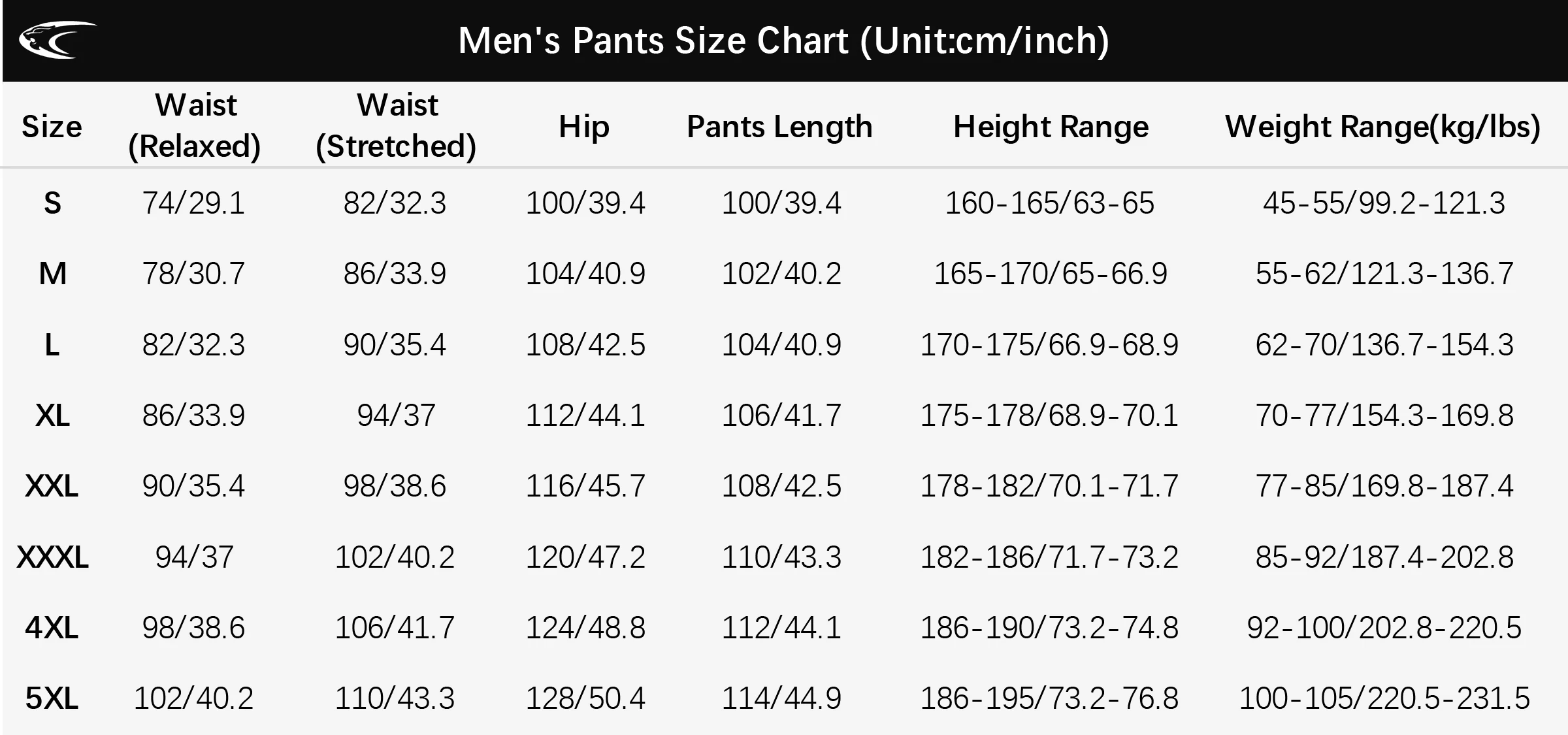 These men's trekking pants are available in adult sizes S-5XL, It is suitable for those with a height of 160-195 cm and a body weight of 45-105 kg,and are perfect for whatever your body shape is.