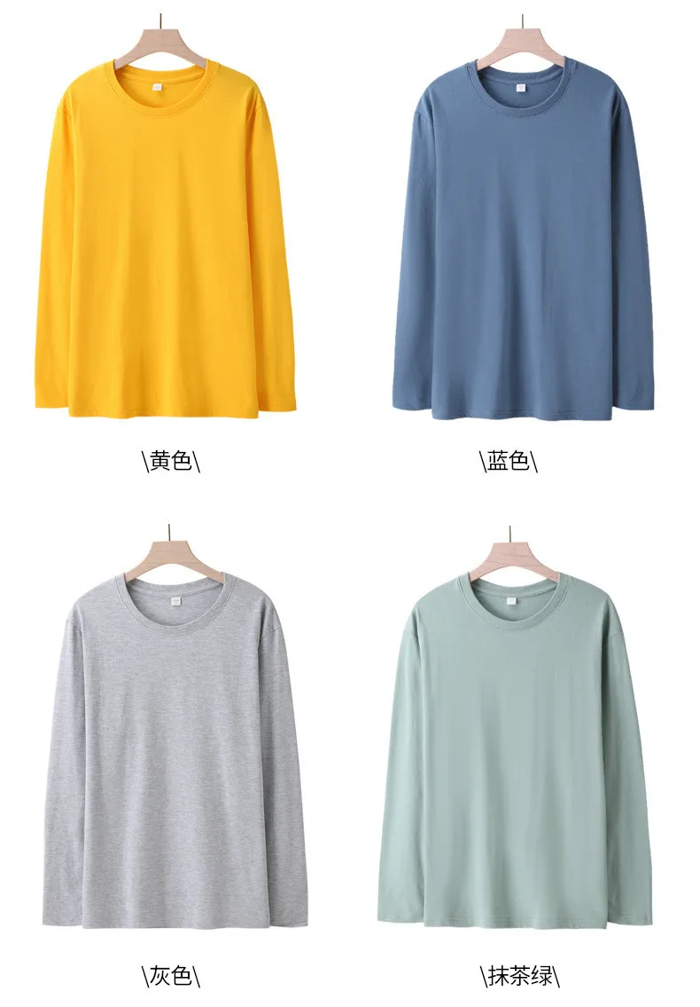 Long Sleeves T-Shirts Men 100% Cotton Tee Tops Male Autumn Basic Plain Color Tshirts Women Normal Fit Size M-5XL Under Wear Man