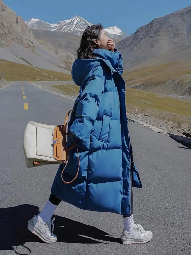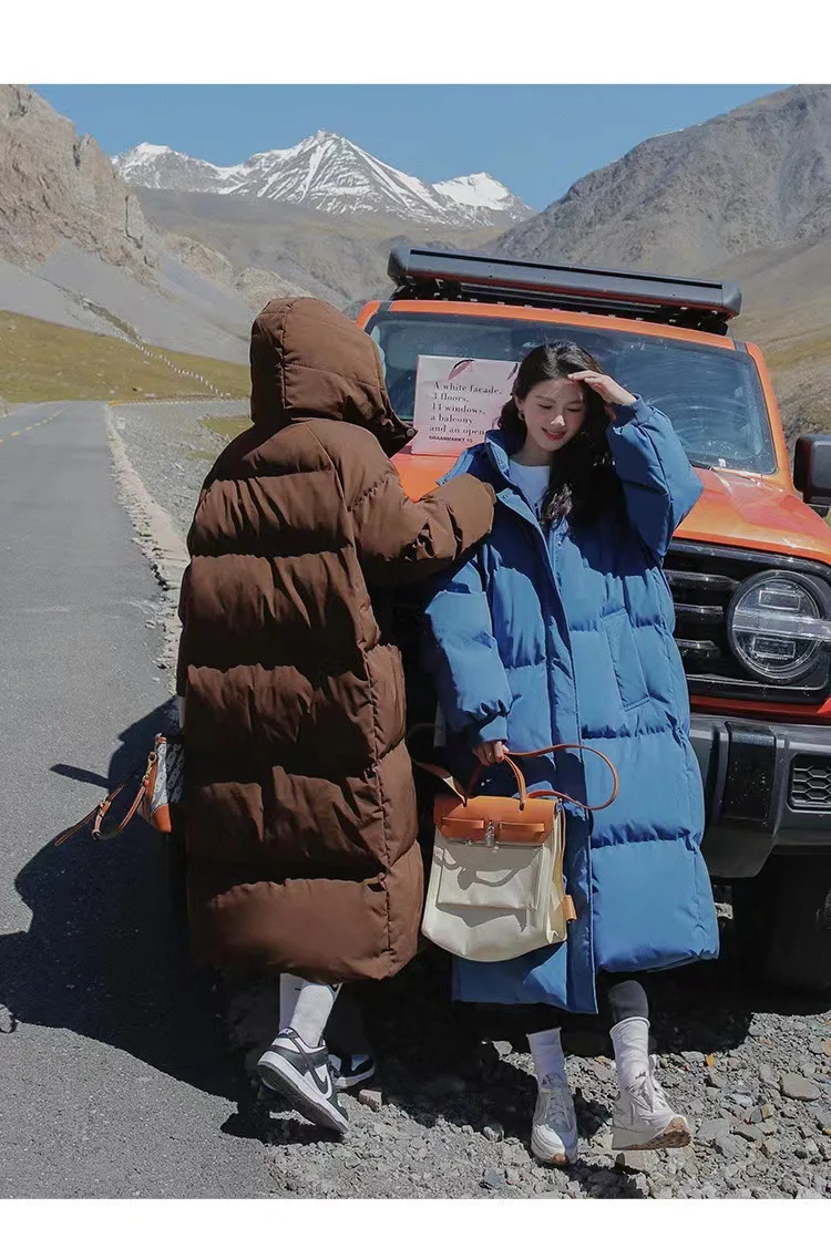 Long Thickened Down Cotton Bread Style Coat Women's Winter 2025 Outerwear Korean Loose Long Knee Length Solid Hooded Jacket