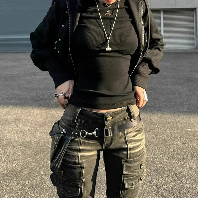 Low Waist Workwear Pants Women's Slimming Floor-Length Bell Bottoms Trendy Y2K Millennium Cargo Trousers Retro American Style