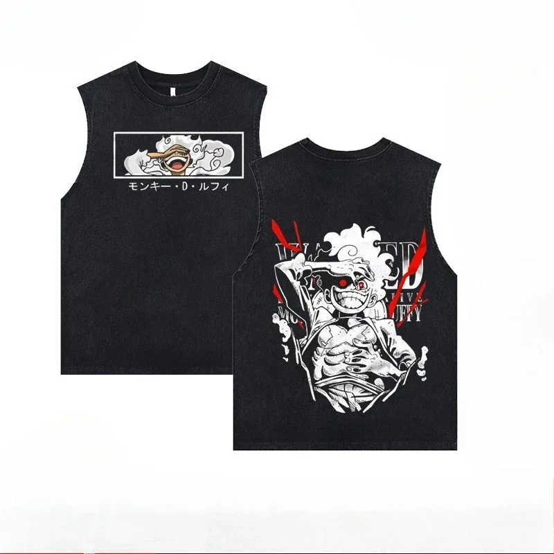 Luffy printed anime fitness vest summer new men s vest Y2k women s washed casual sleeveless shirt streetwear Harajuku