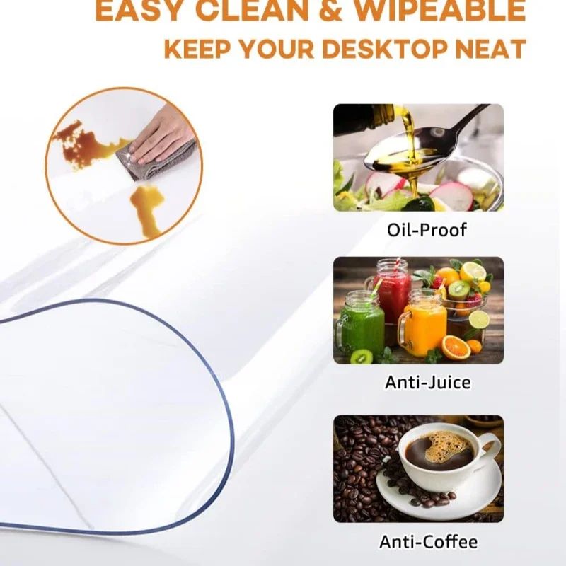Made of soft and durable PVC plastic vinyl, hot pressed into rolls. This transparent PVC table cover is durable, waterproof and oil-proof.