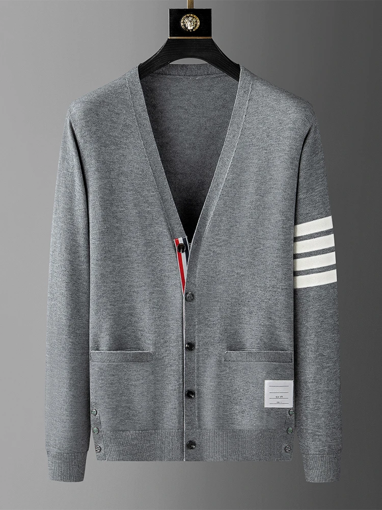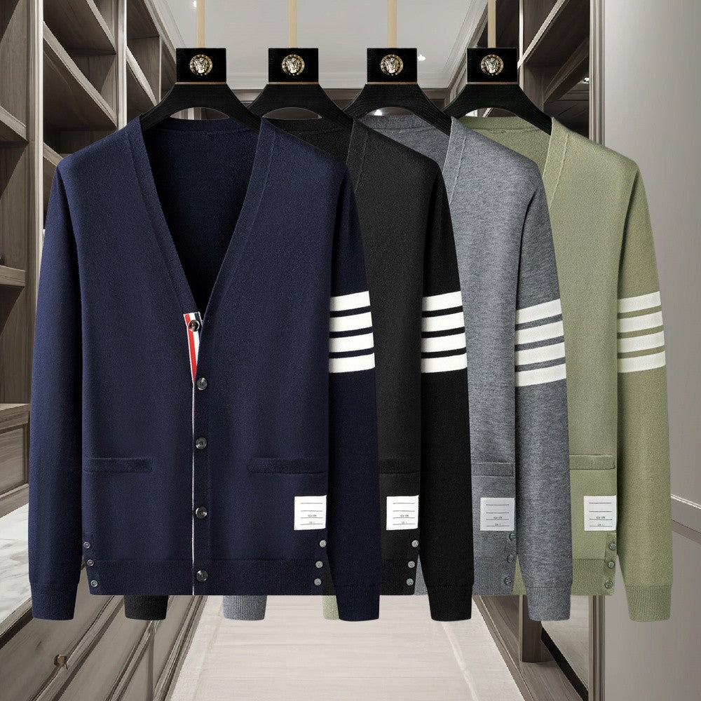 Luxury brand men's knitted sweater for autumn and winter high-end striped design Korean version boutique cardigan casual jacket