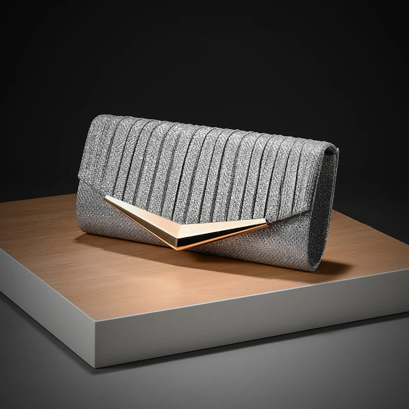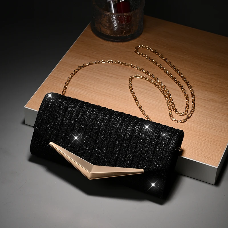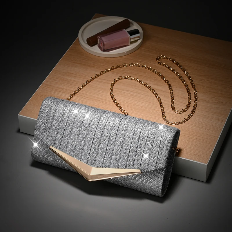 Luxury Envelope Evening clutch Bag New Bright Grain Wrinkle Textured Long Hardware shoulder bag Wedding Handbag for wedding bag