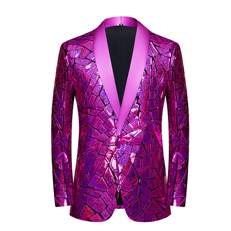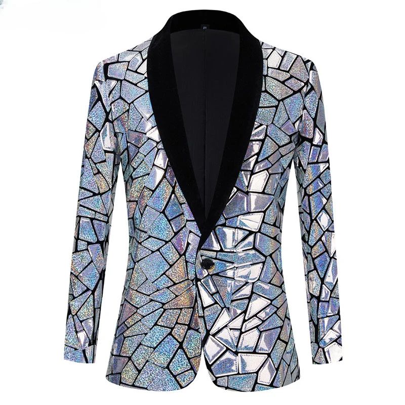 Luxury Laser Sequin Tuxedo Blazer Jacket Men One Button Shawl Lapel Dress Suit Blazer Male Party Stage Prom Singer Costume Homme