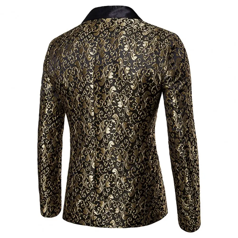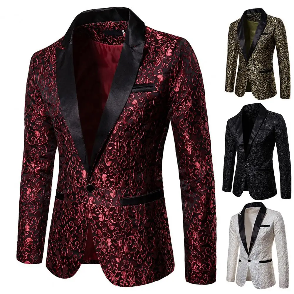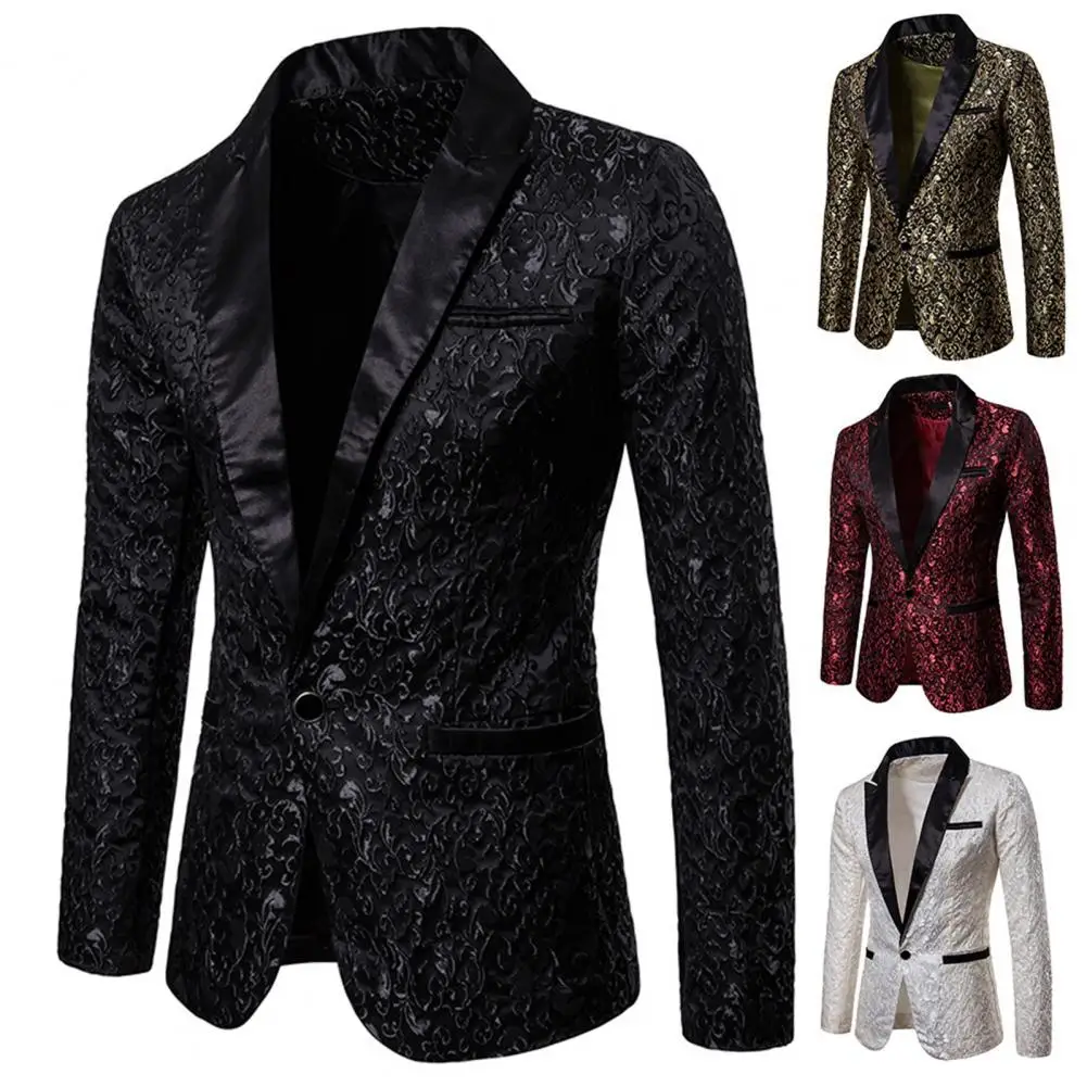 Luxury Men Jacquard Single Button Slim Fit Turndown Collar High Quality Wedding Banquet Men Jacket Coat