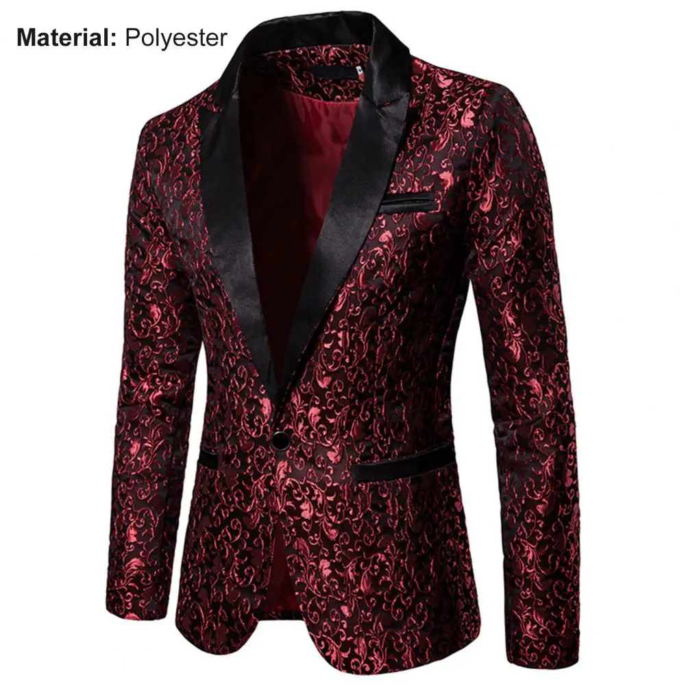 Men Blazer Jacquard Single Button Autumn Winter Pockets Lapel Suit Coat for Wedding
