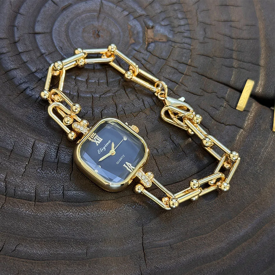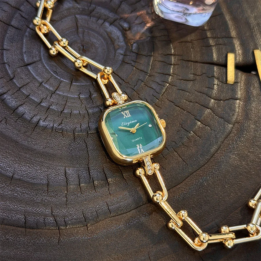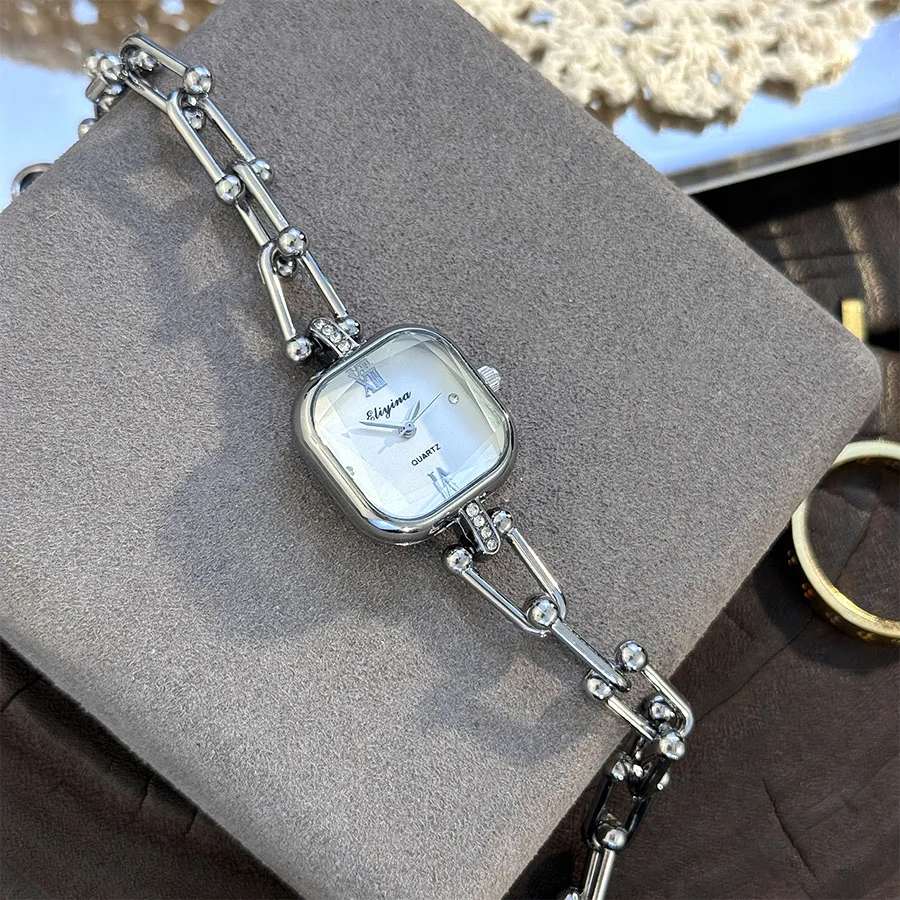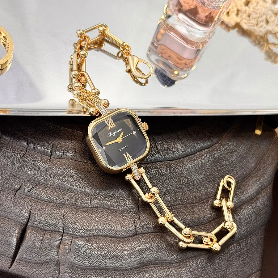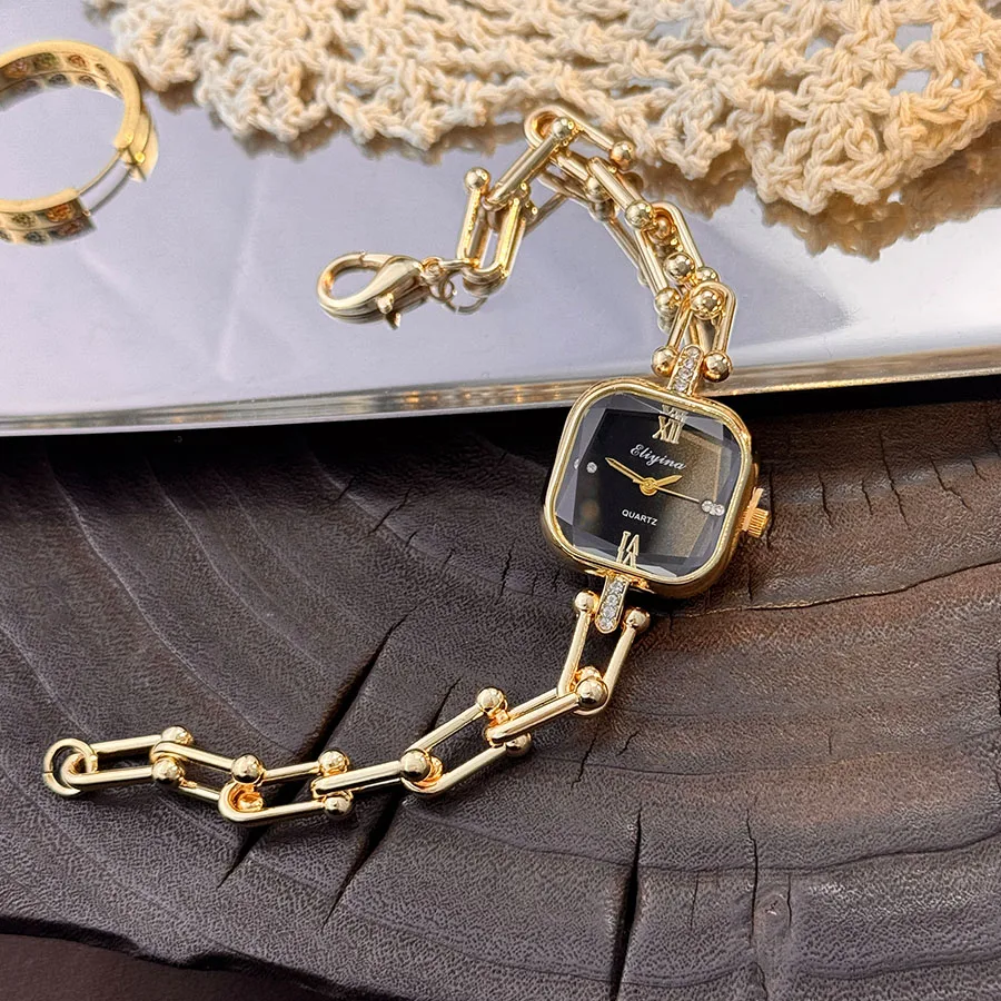 Luxury Minimalist Bracelet Watch Creative Square Multi-Faceted Glass Quartz Movement Chain Mid-century Small High-End Acces