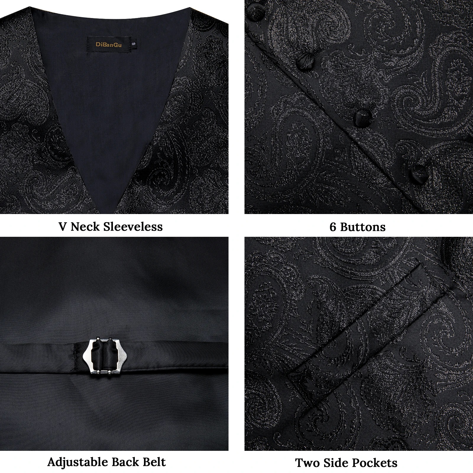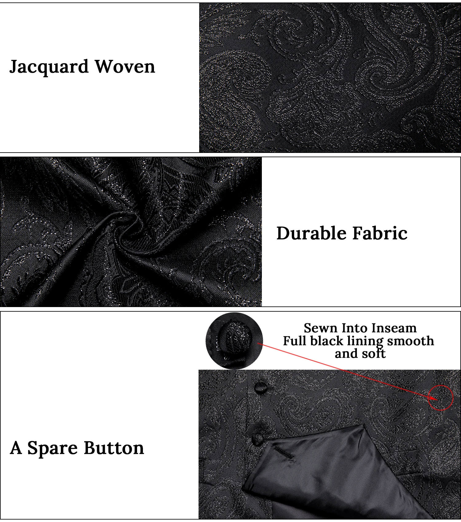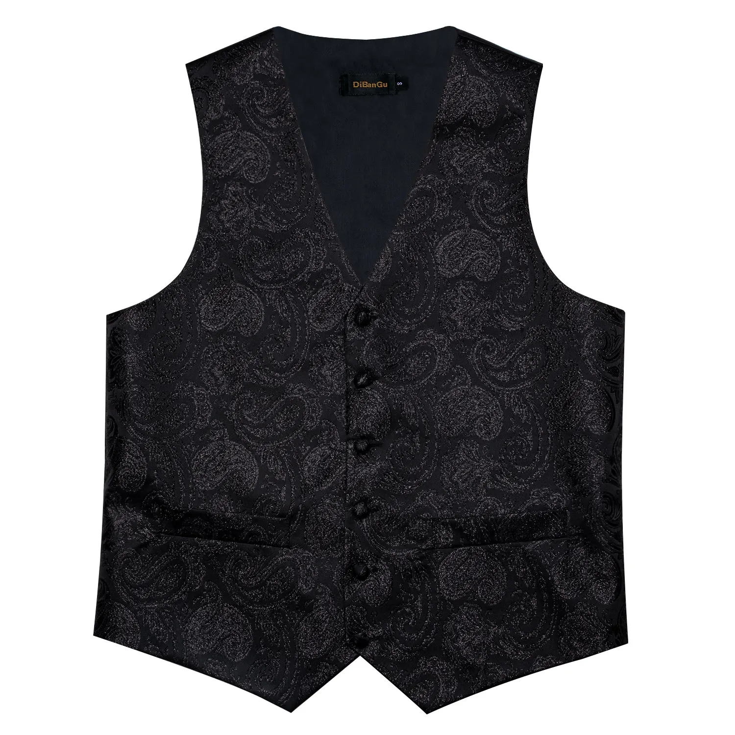 Luxury Paisley Men's Suit Vest Black Pink Red Wedding Prom Tuxedo Waistcoat Necktie Handkerchief Cufflink Sleeveless Jacket Vest