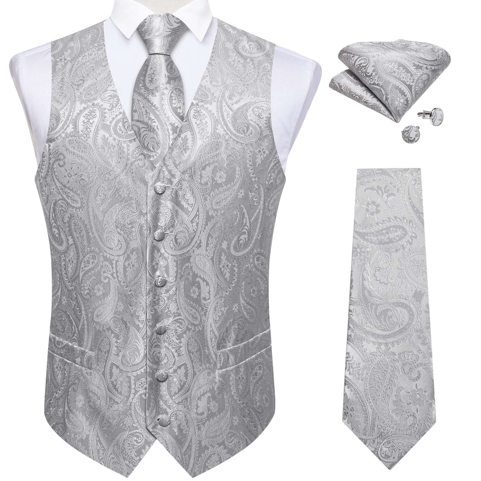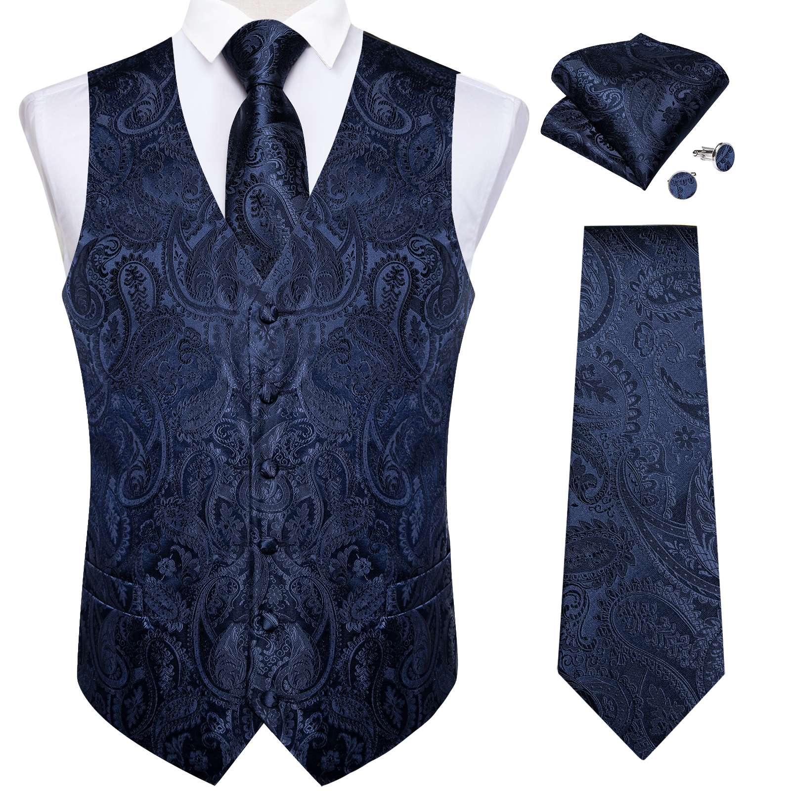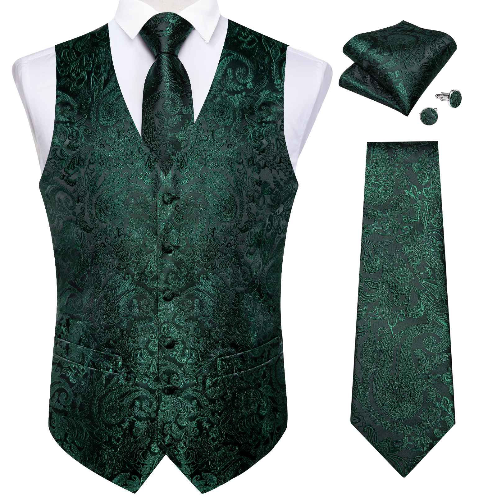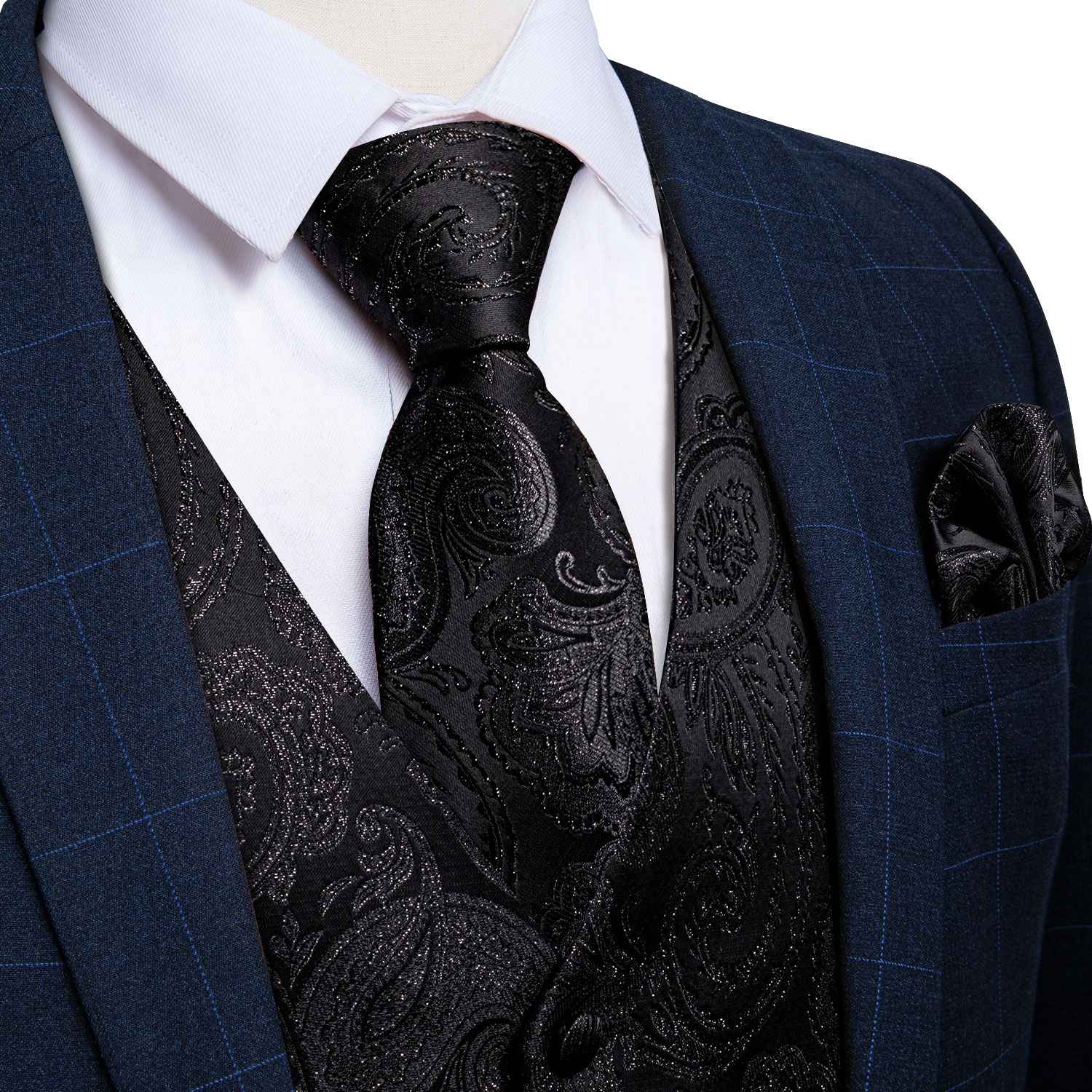 Luxury Paisley Men's Suit Vest Black Pink Red Wedding Prom Tuxedo Waistcoat Necktie Handkerchief Cufflink Sleeveless Jacket Vest