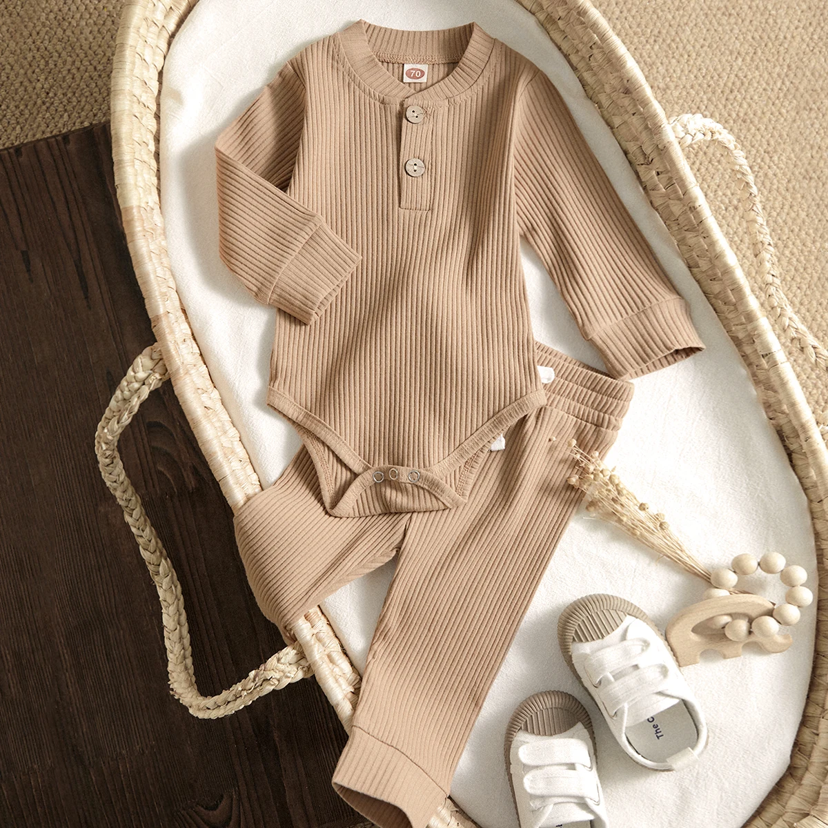 Ma&Baby 0-24M Newborn Infant Knit Baby Boy Girl Clothes Set Long Sleeve Button Romper Pants Outfits Autumn Spring Baby Clothing